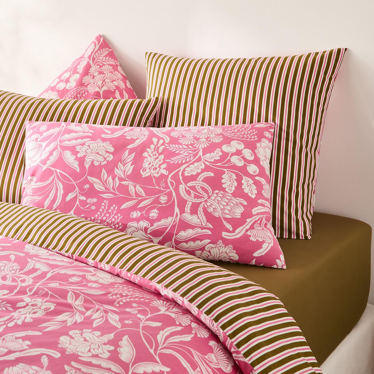 Spectacular, traditional Persian prints brought up to date in a bright, cheerful colour! A contemporary vertical stripe adds a twist to this classic print. Designed by La Redoute Intérieurs. Cotton is part of our daily lives. We love it for its suppleness and softness. Easy Care, it is ideal for the beds of young and old alike!Product Details • 100% cotton • 144 thread count • Persian flowers printed on the front/striped print on back • Pillowcase sold separately. As the seasons change, add your own personal touch by mixing the Linda range with our plain range from Scenario Care Advice • Machine washable at 60°C • By washing your laundry at 40°C instead of 60°C, you limit energy consumption. Dimensions • 50 x 70cm: Rectangular pillowcase • 63 x 63cm: Square pillowcase • OEKO-TEX® Standard 100. Standard 100 certification by OEKO-TEX® tests textile products for harmful substances via an independent, international label.