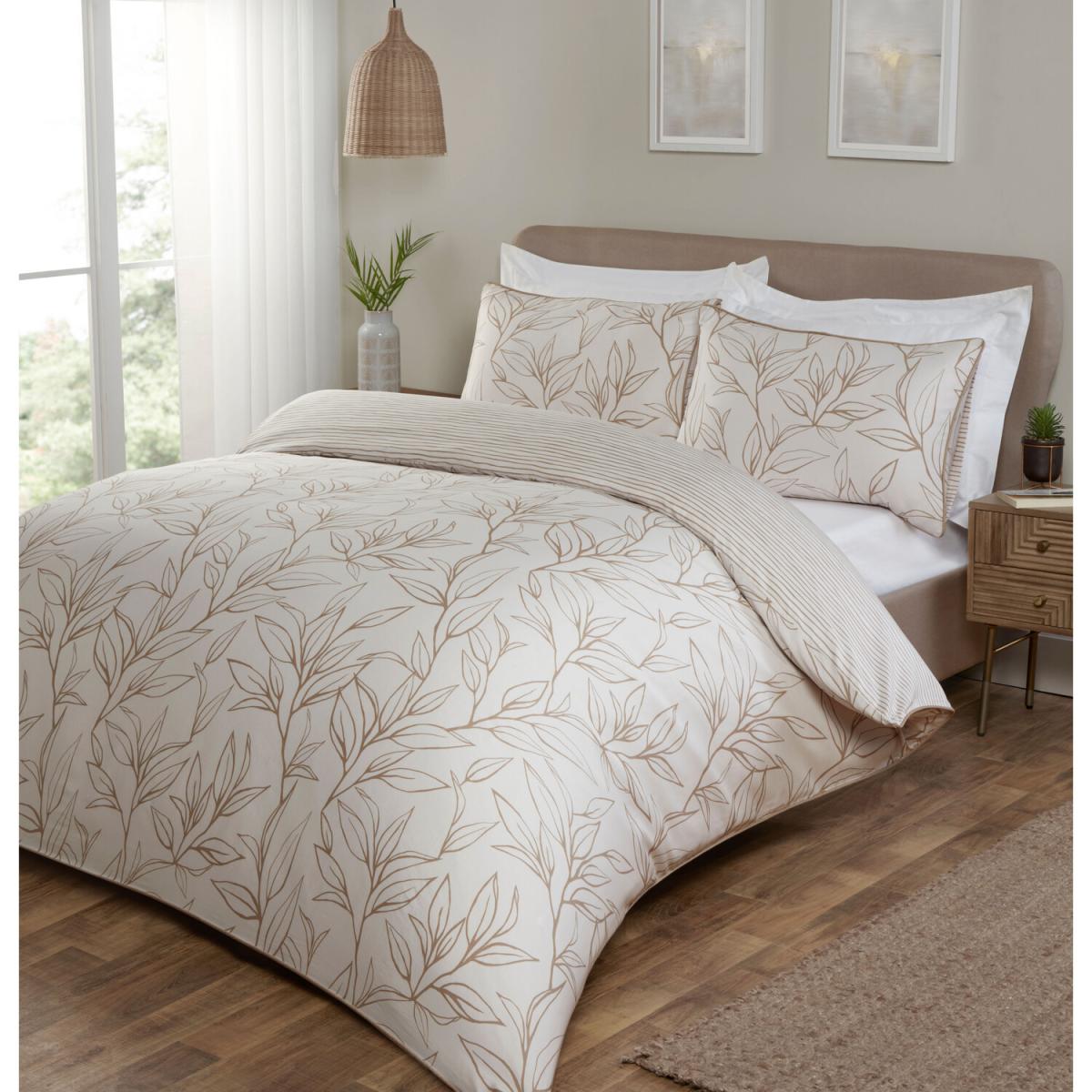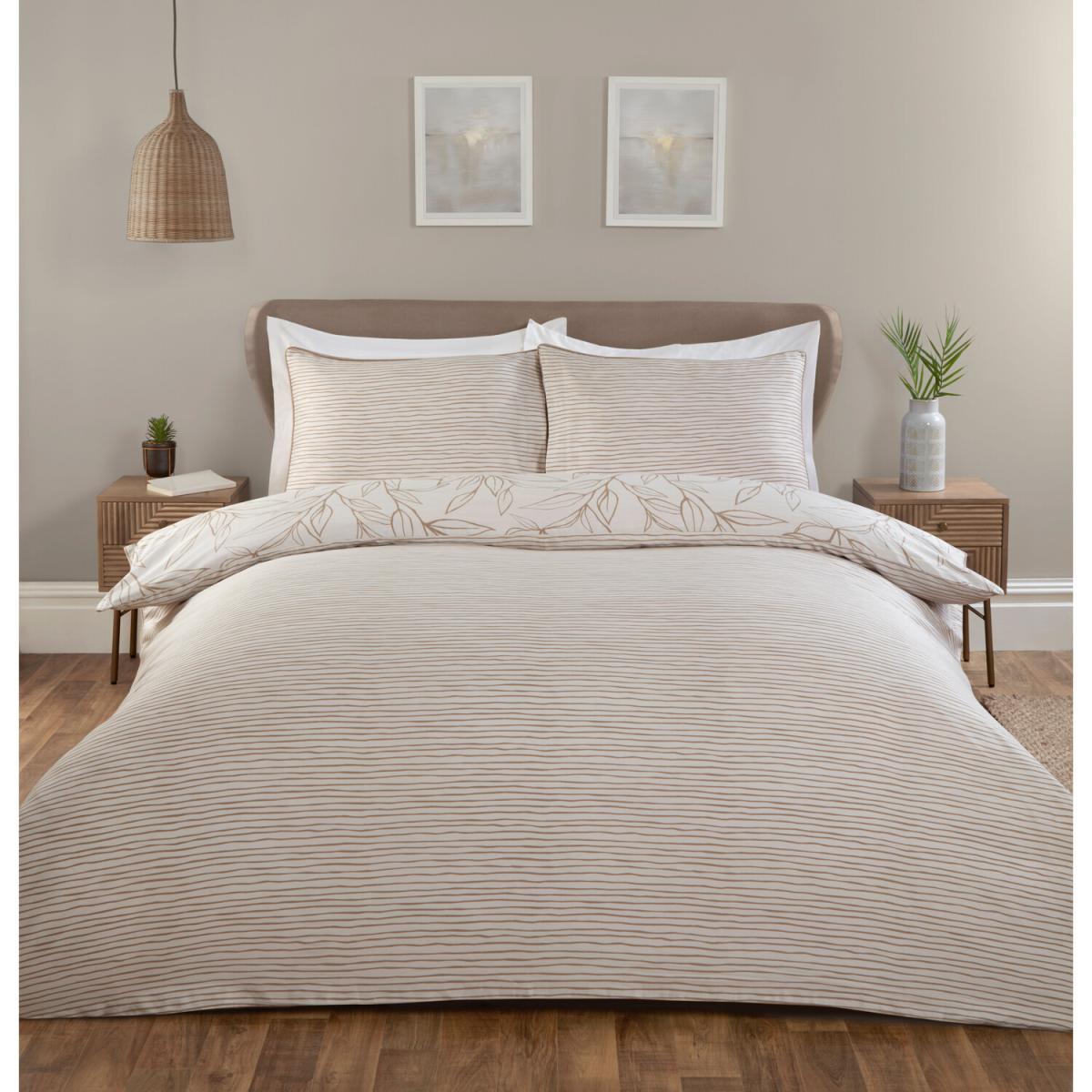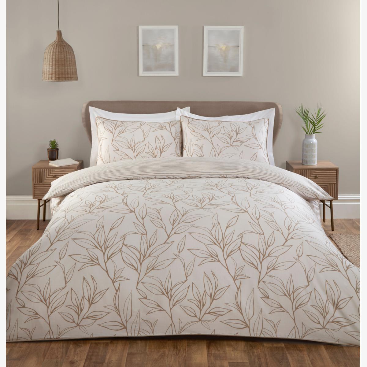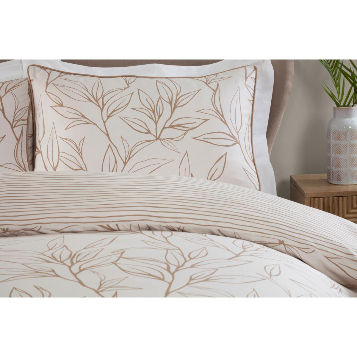 Turn your bedroom into a bohemian oasis with this Linden Duvet Set with matching pillowcases. Made from 100% cotton, this quality bedding is also reversible, with a botanical design on one side and a striped pattern on the other. The neutral colour palette is modern and timeless, providing a sense of luxury to your room. It is finished with a piped edge for an air of sophistication and is sure to make you feel calm and relaxed when you go to bed.