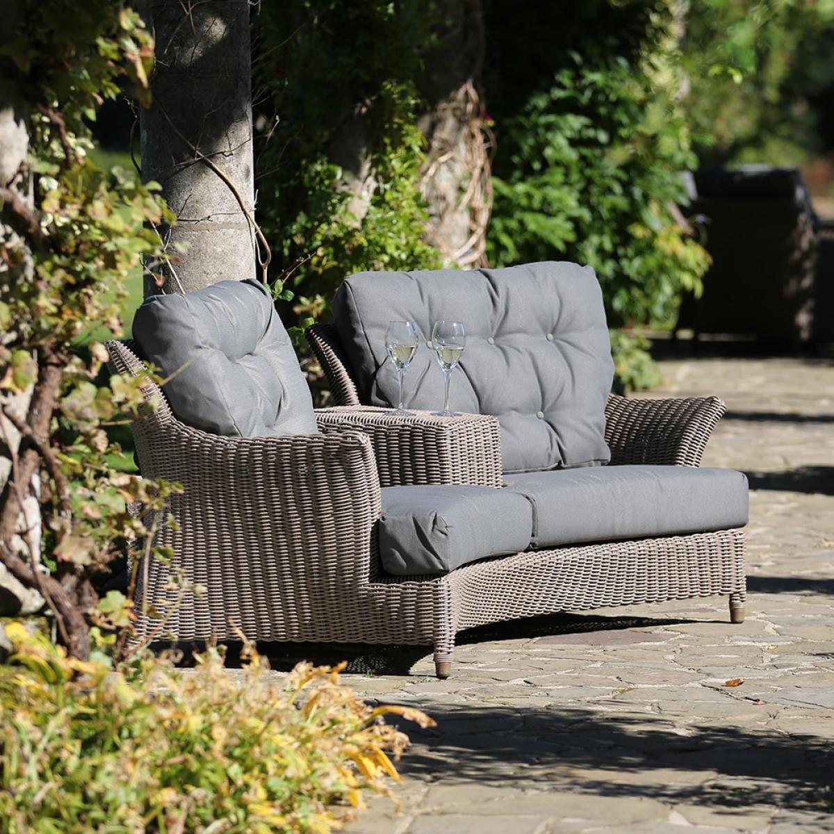 With the fabulous Linden Rattan Love Seat you can sink into the sumptuous cushions and bask in the sunshine with your loved one by your side! Featuring a central wide armrest, set chilled drinks down and enjoy a glass or two of wine in the garden! Covered with a handwoven polyloom wicker made from high quality weather-resistant materials, even if the heavens decide to open, this fantastic furniture can remain uncovered and the cushions can be left outdoors! Available separately, why not pop your feet up on the matching curved footstool and completely lose yourself this summer! And with other designs available, from Sun Loungers to Lounge Sets, extend your Linden collection and make room for all of the family!.