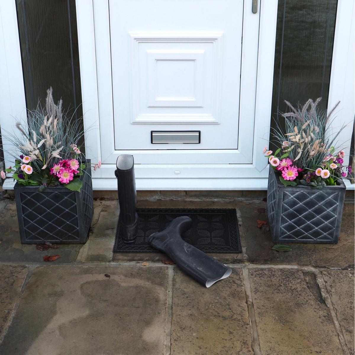 I like this mat for its simple, utilitarian style which makes it a versatile choice for various entryways. Its black rubber design is perfect for a modern or minimal interior, offering a sleek look that hides dirt and wear well. The textured surface is practical for scraping dirt from shoes, making it both functional and low maintenance. I’d recommend pairing it with contemporary or industrial style interiors, where clean lines and monochrome tones are key. For styling tips, keep the surrounding area free of clutter to let the mat stand out, and consider adding a statement plan or a coat rack nearby to create an inviting yet practical entrance setup.