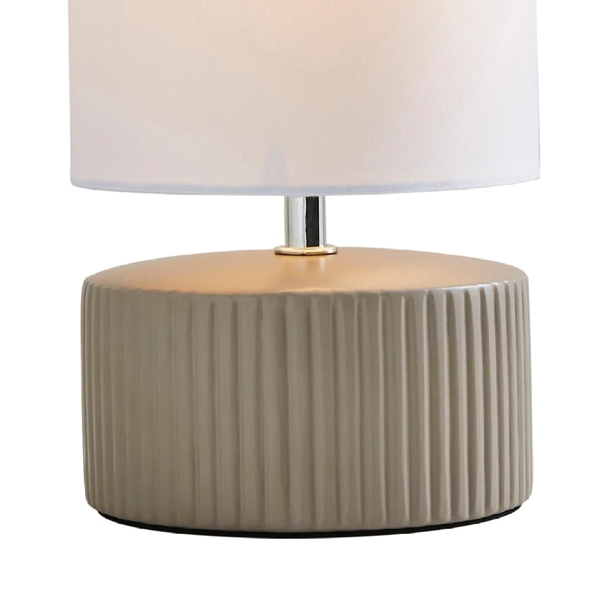 I really like the look of this table lamp; the taupe ribbed ceramic adds texture and a subtle warmth that suits many interiors. It's a versatile piece that works well in both contemporary and more transitional spaces, particularly alongside neutral palettes or natural materials like wood and linen. For styling, consider placing it on a side table or bedside cabinet to create a cosy, inviting glow. Pairing it with other soft-weave textiles or metallic accents can elevate the look further. Simplicity is key here, so keep surrounding accessories minimal to let its understated design shine.