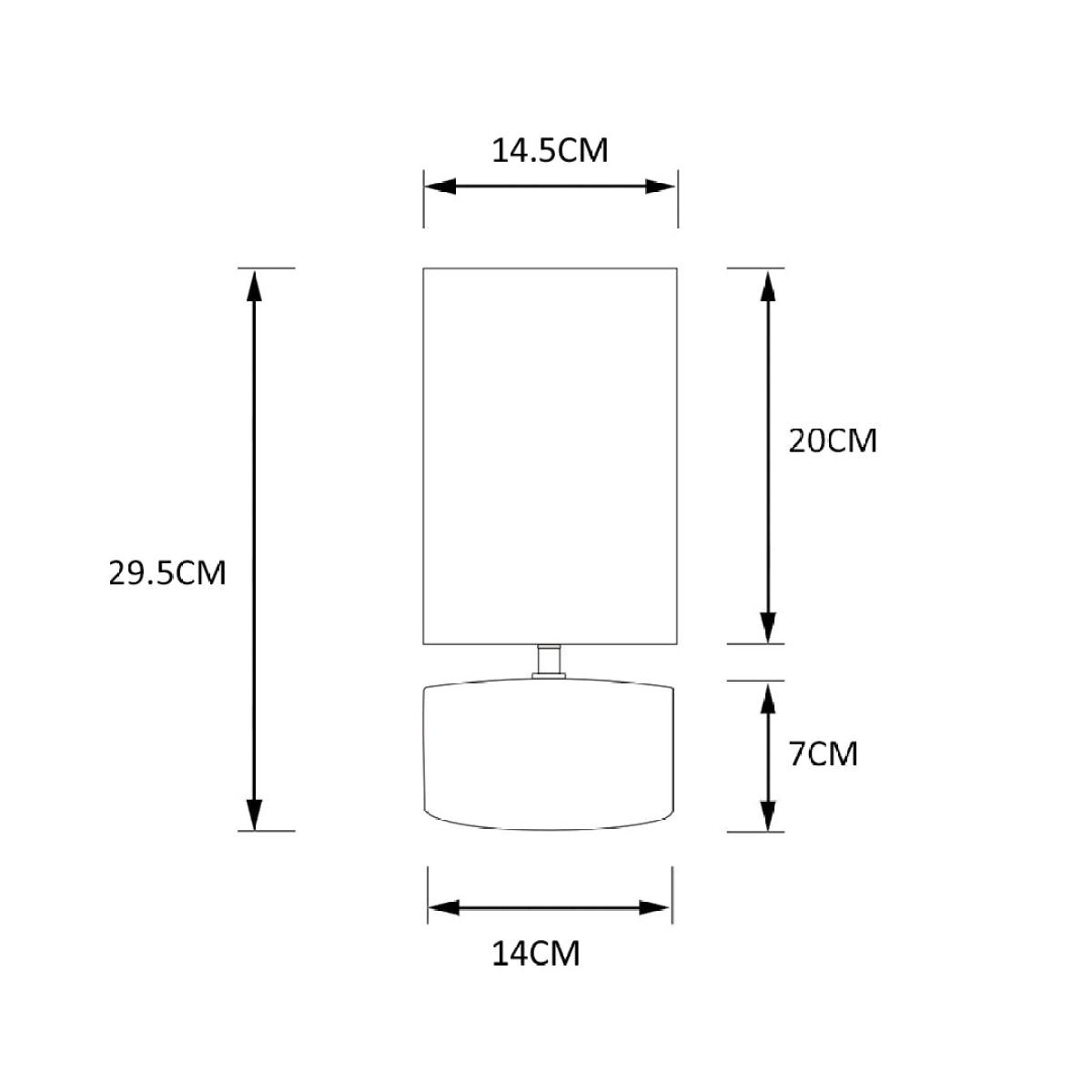 Height: 29.5cm Diameter: 14.5cm In-line switch on cable Requires 1 x E14 candle lightbulb (not included)