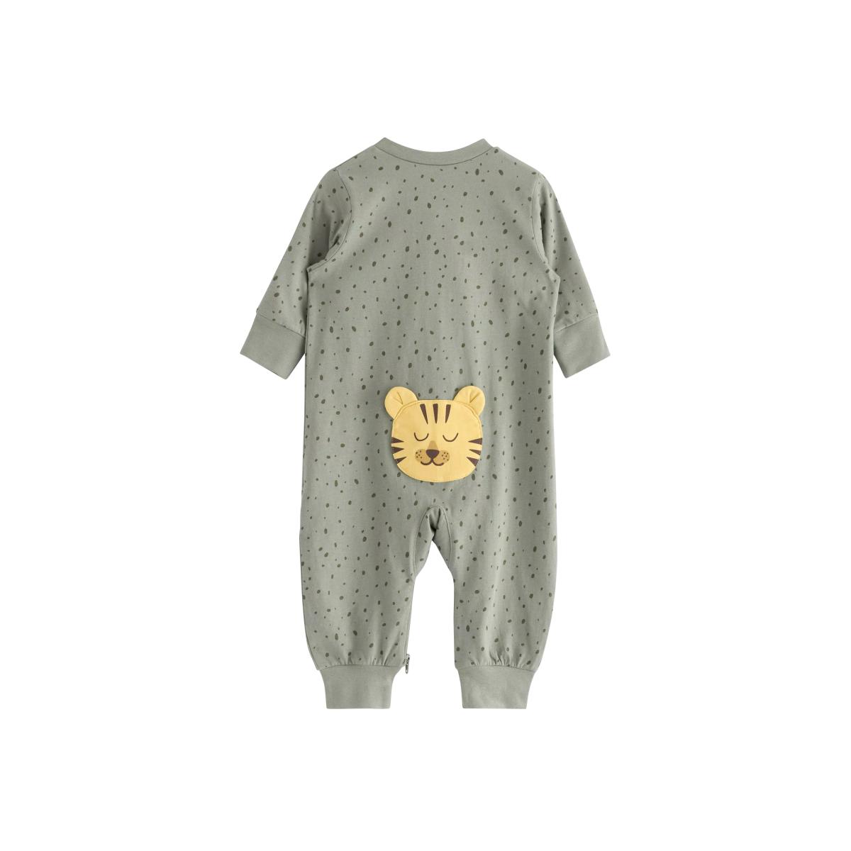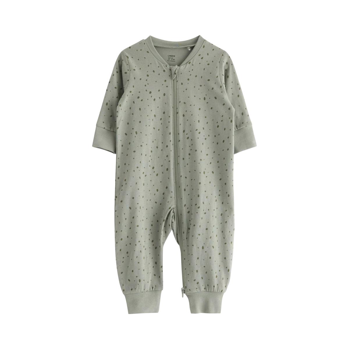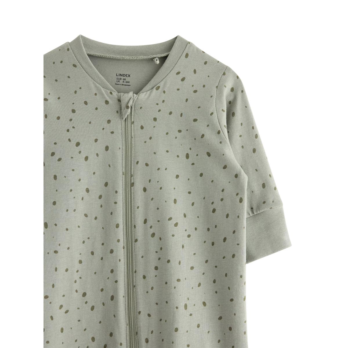 Lindex Baby Cotton Applique Spot Sleepsuit, Dusty Green