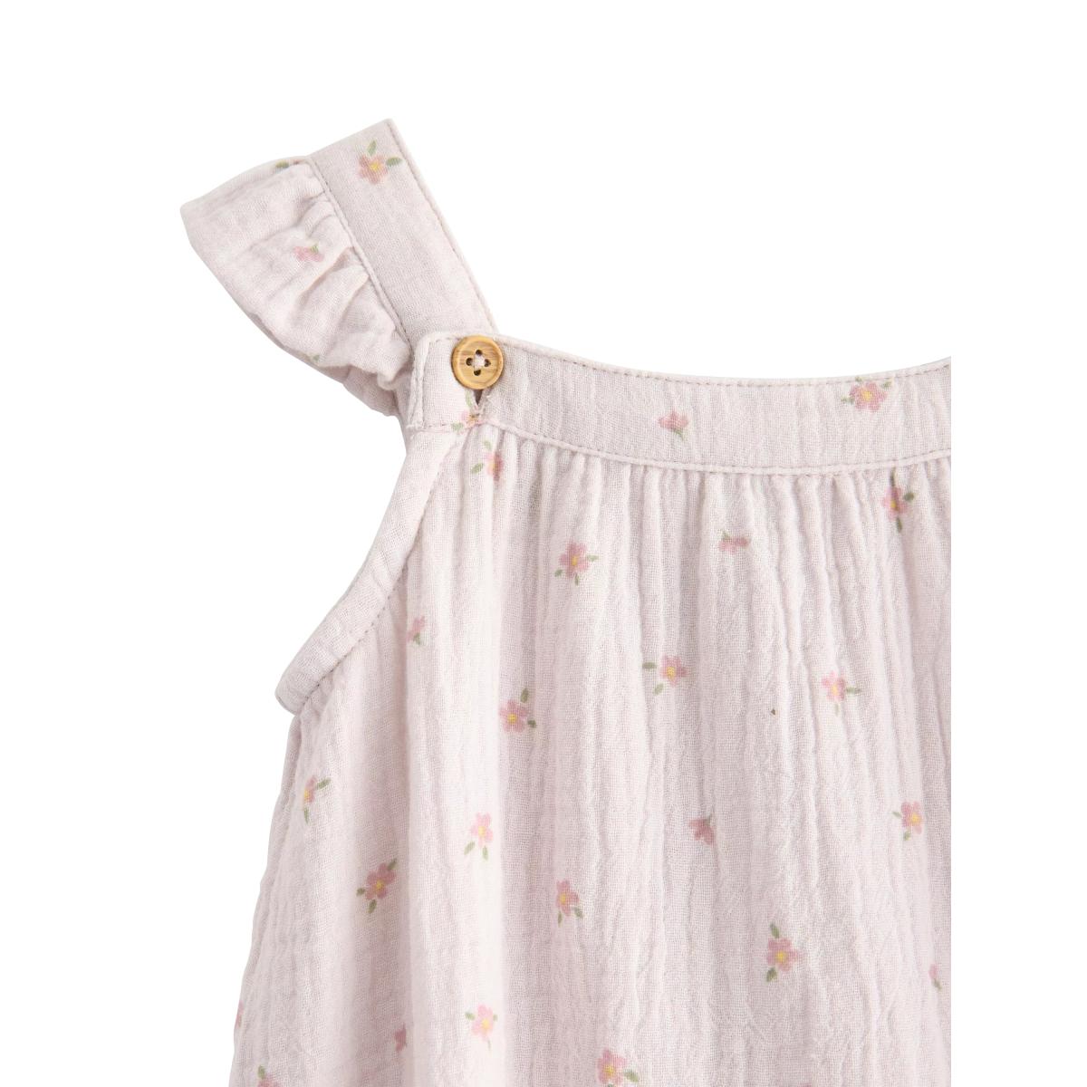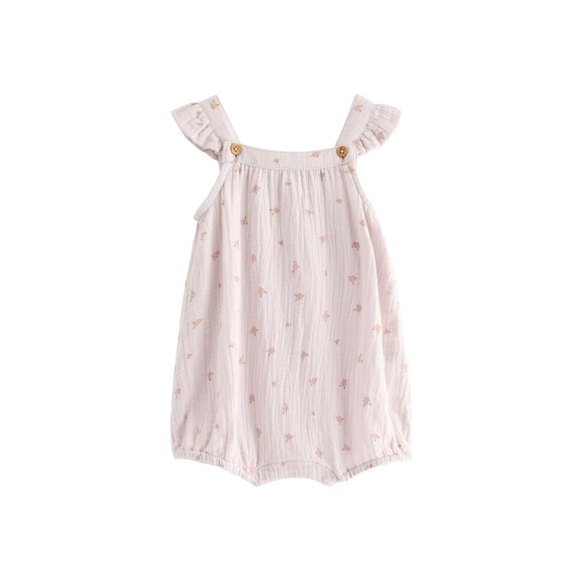 Lindex Baby Cotton Floral Romper, Light Dusty Lilac