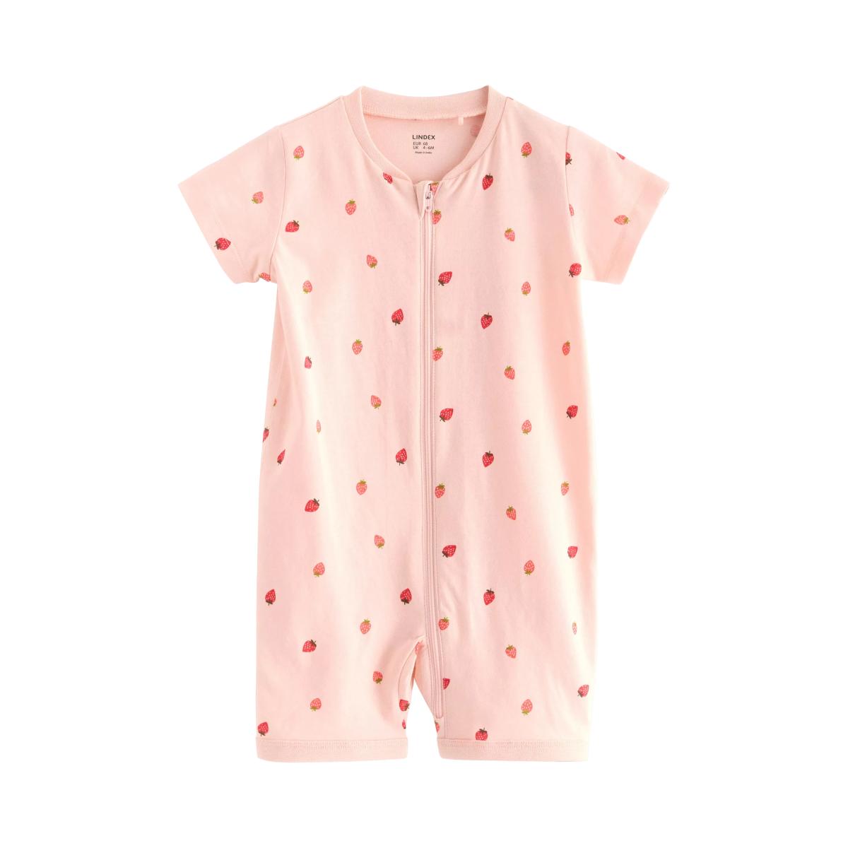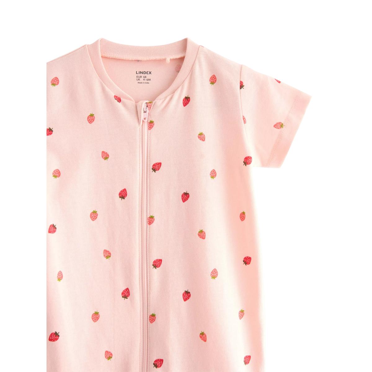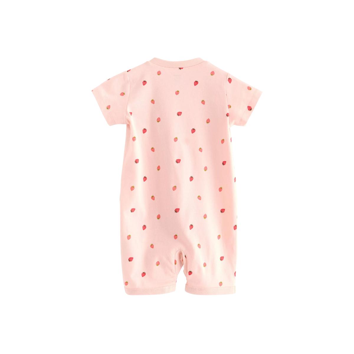 Lindex Baby Cotton Strawberry Print Shortie Sleepsuit, Light Pink