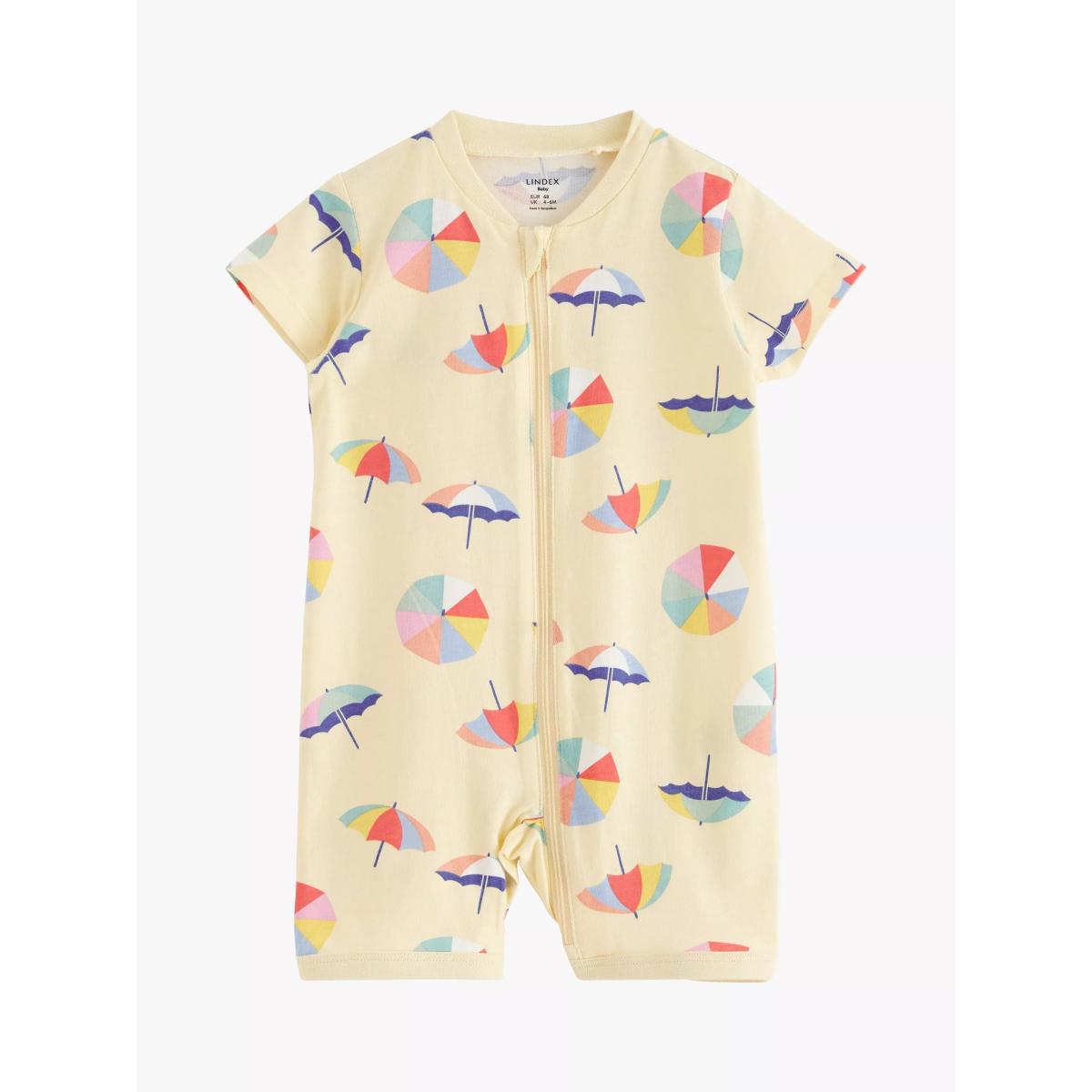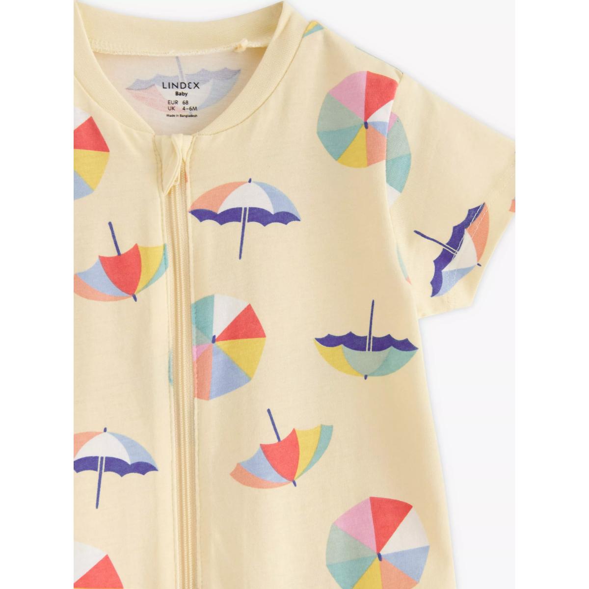 Lindex Baby Organic Cotton Parasol Print Romper Bodysuit, Light Dusty Yellow