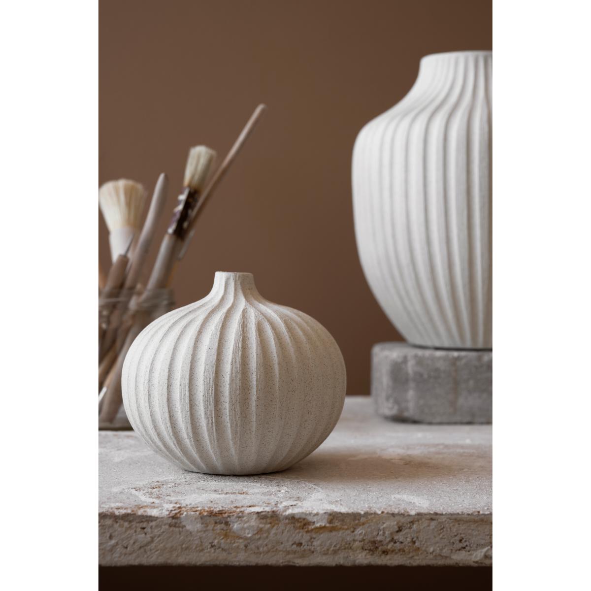 I love the Lindform Bari vase in sand white - its understated, textured finish and soft colour make it a versatile addition to various interiors. It works particularly well in minimalist or Scandinavian-style spaces, where its subtle ridged design adds visual interest without overpowering the room. For styling tips, consider pairing it with single stem flowers or dried botanicals for a contemporary look, or use it as a standalone sculptural piece on a console or shelf. Its size and shape make it suitable for both table centrepieces and more discreet displays; just keep arrangements simple to let the vase's tactile quality shine through.