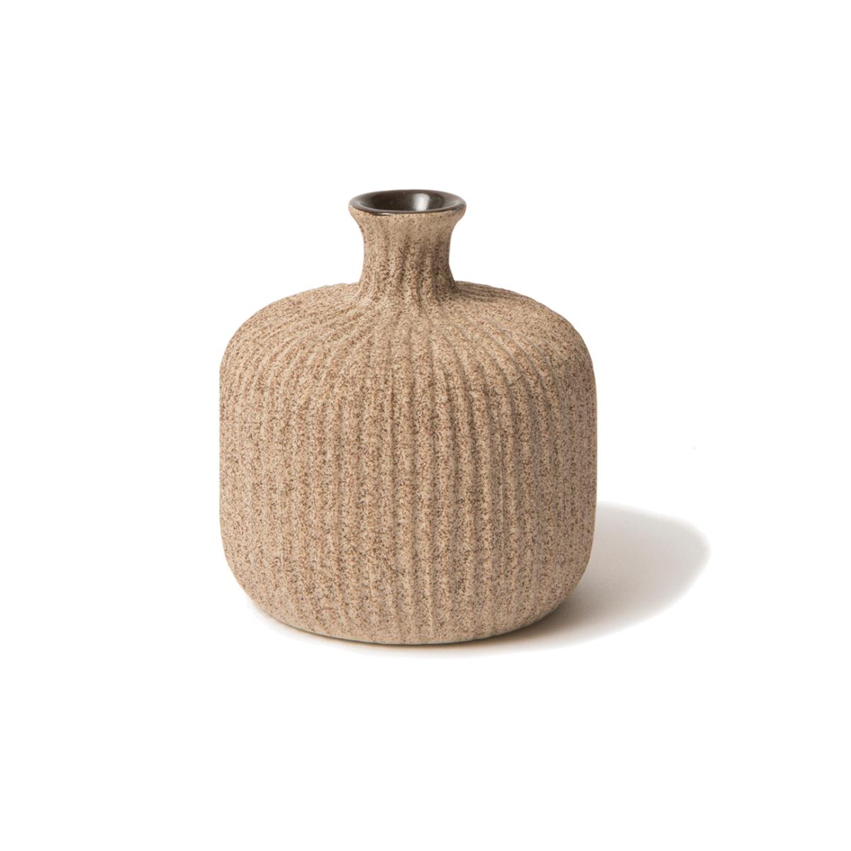 I love this little bottle vase for its understated texture and versatile size. Its Sand hue works beautifully in both neutral and earthy-toned interiors, adding warmth without overwhelming the space. It's great for minimalist or Scandinavian styles, where simple forms and subtle details are key. To style it effectively, try pairing it with a few delicate wildflowers or dried grasses for a casual feel, or leave it empty as a sculptural accent on a sideboard or shelf. The small size makes it perfect for surfaces like bedside tables or windowsills, where it can add character without cluttering. Overall, it's a practical and tactile piece that can be styled in numerous ways to enhance various interior themes.