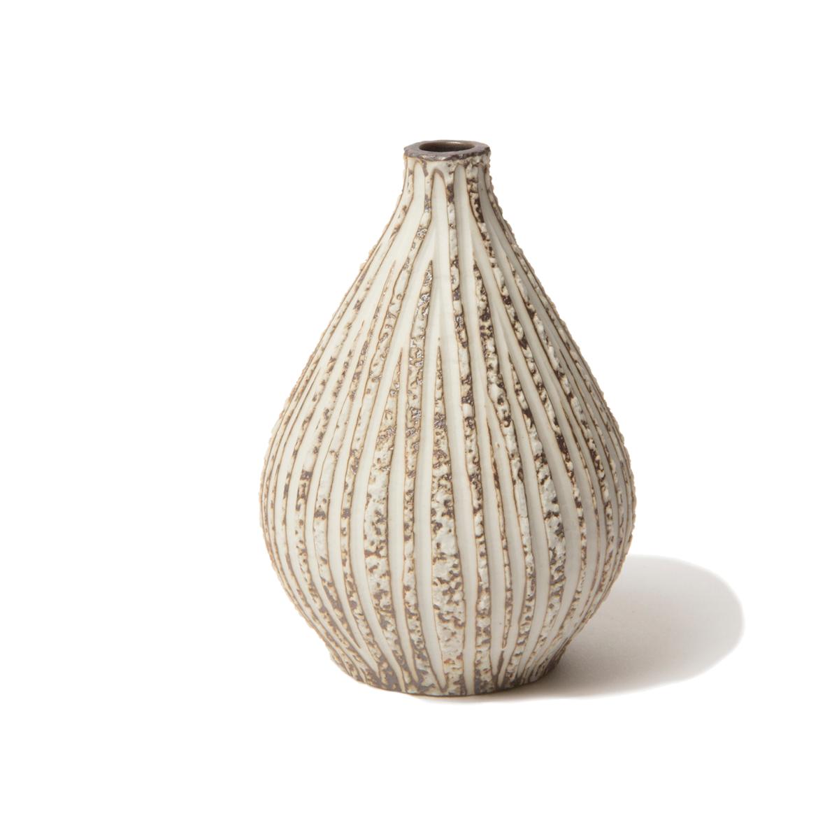 I love the Lindform Kobe in Stone stripe for its clean, organic shapes and textured finish, making it a versatile piece that adds character to both modern and rustic interiors. It works particularly well in neutral, minimalist spaces where its subtle pattern can stand out, or as a contrasting element in a more eclectic arrangement. Practical styling tips include pairing it with simple, monochrome flowers or foliage to highlight its natural aesthetic, or using it as a standalone sculpture on a mantelpiece or side table for a sculptural focal point. Its understated elegance makes it a great choice for bringing a tactile, earthy feel to any setting.