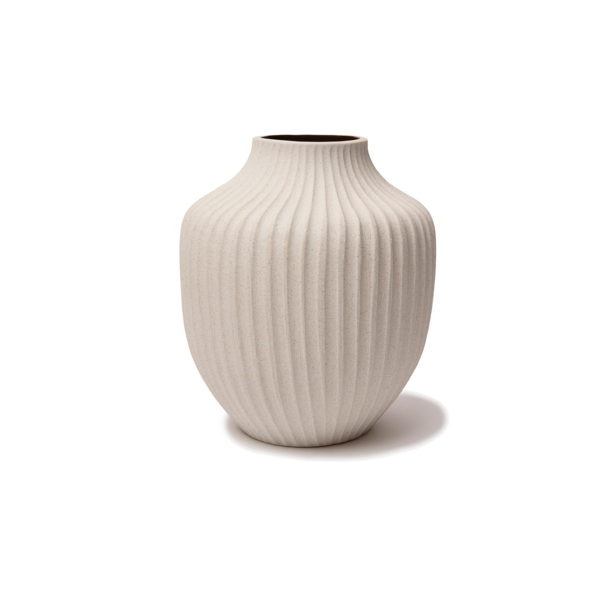 The Kyoto vase in sand white with its deep line detailing is a versatile piece that works well in both contemporary and minimalist interiors. I love how its neutral colour and textured surface add subtle sophistication without overpowering other decor elements. It’s perfect for showcasing fresh or dried stems on a dining table, sideboard, or windowsill. For practical styling, try pairing it with slender, architectural foliage or simply display it on its own as a statement piece. Its understated elegance also lends itself well to layered displays, so consider grouping it with other vases of varying heights and textures to add visual interest.