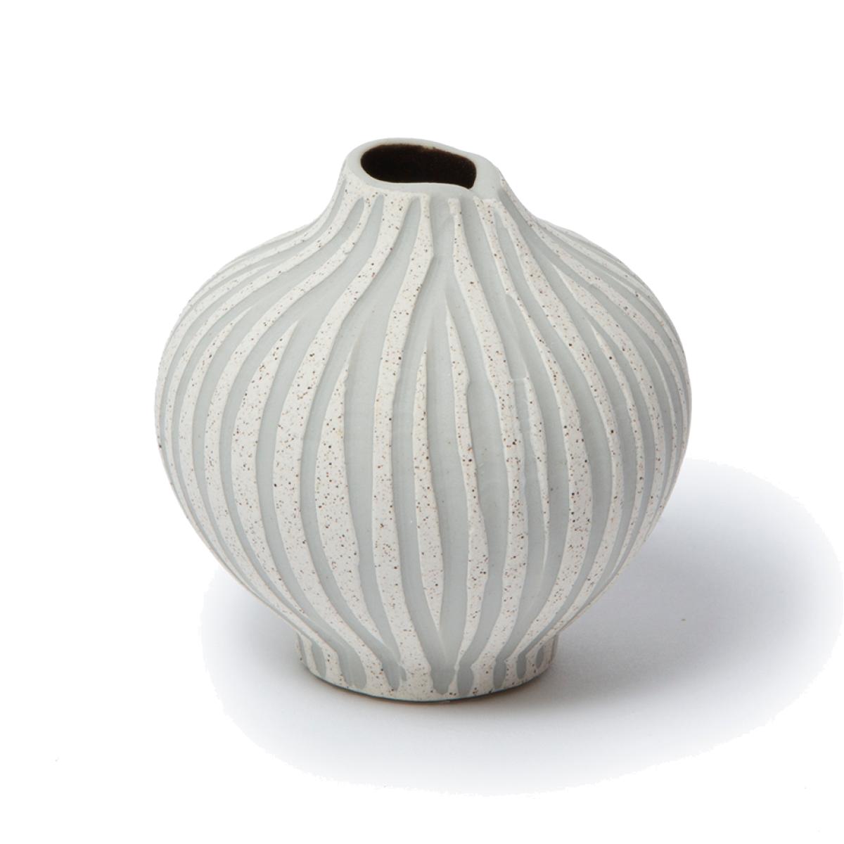 I love this small vase because of its subtle, textured finish and natural colour palette, making it versatile for various interiors. It works especially well in modern, minimalist, or Scandinavian schemes where understated elegance is key. A tip for styling is to keep arrangements simple-perhaps a few dried grasses or single stems of greenery-to let the texture of the vase shine. Its neutral tone and gentle stripe pattern also make it suitable as a standalone decorative piece on shelves, side tables, or mantelpieces, adding a tactile element without overwhelming the space.