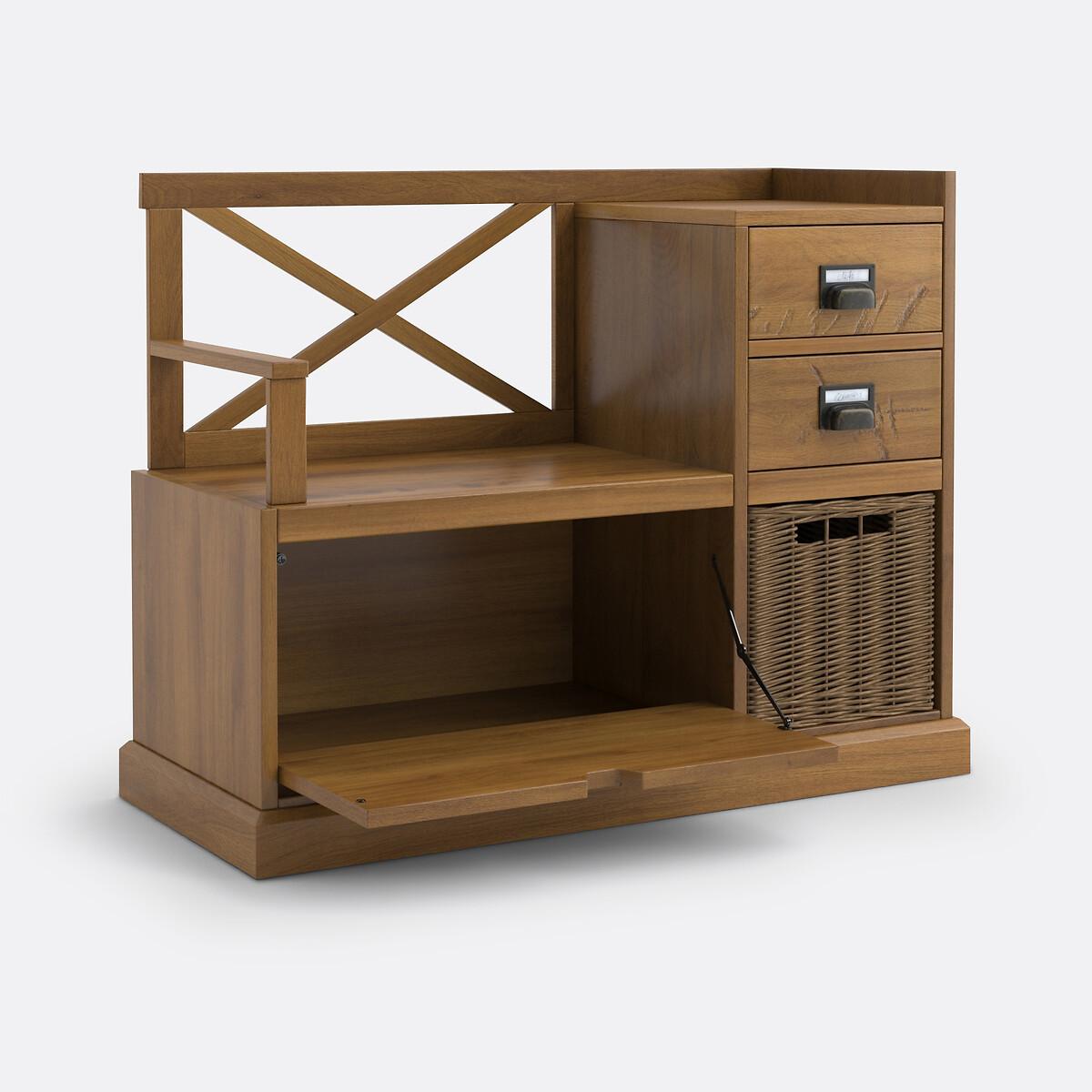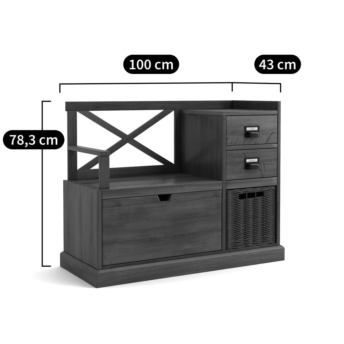 I love this bench for its versatile functionality and natural wood finish, making it a great addition to various interior styles. It works particularly well in rustic, Scandinavian, or farmhouse-inspired hallways, offering a practical spot for putting on shoes, storing accessories, or housing smaller items in its drawers and basket. When styling, consider layering with a few cosy accessories like cushions or a runner on top to make it inviting. Pairing it with other wood or neutral tones will keep the look cohesive, whereas adding a pop of colour through accessories can create a fresh focal point. Its compact but thoughtfully designed storage makes it perfect for balancing style with everyday practicality in busy hallways or entryways.