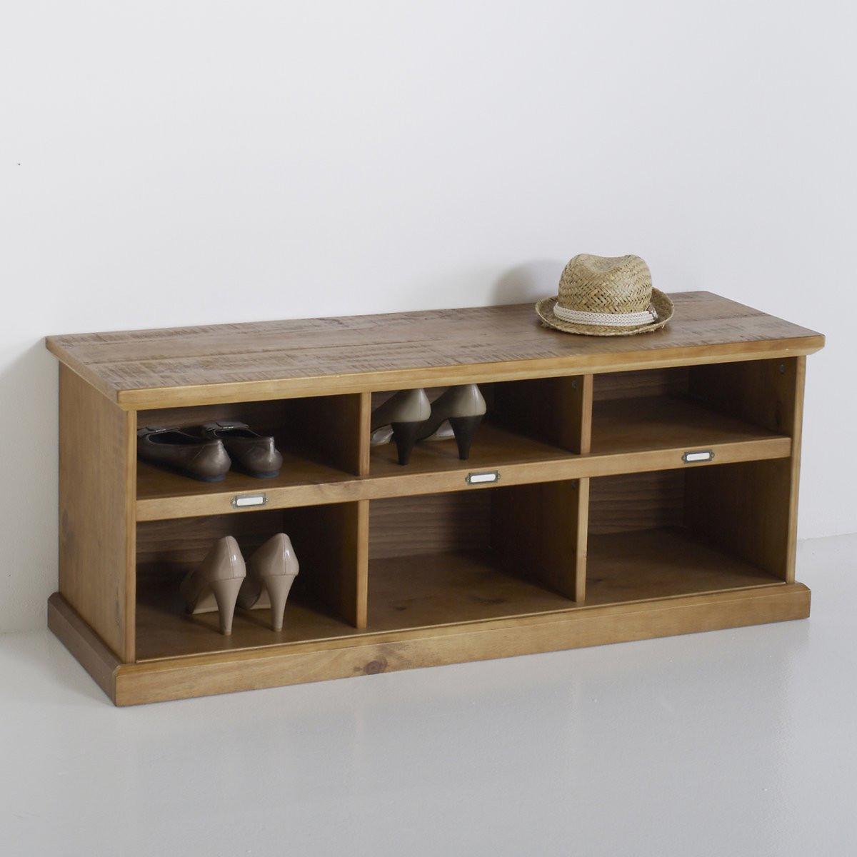 The Lindley pine hallway bench. Very practical in an entrance, this piece of furniture accommodates the shoes of the whole family and allows you to sit down to put on or take off your shoes at ease.