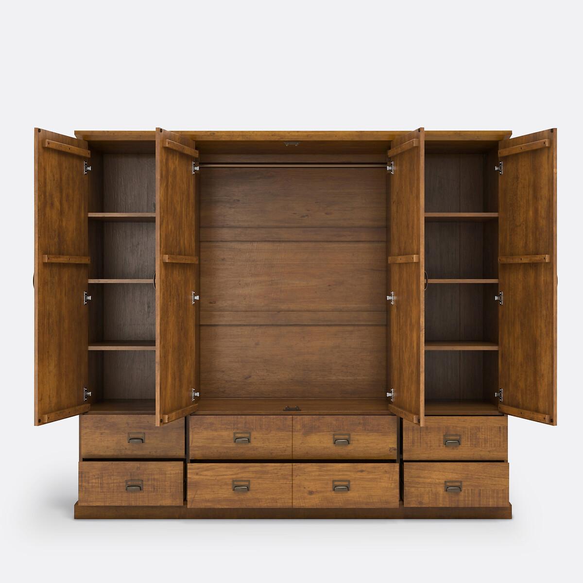 This large-format wardrobe has an original style with its trompe-l'oeil drawer fronts: 8 fronts conceal 6 drawers: 2 large in the centre, and 2 small on each side.