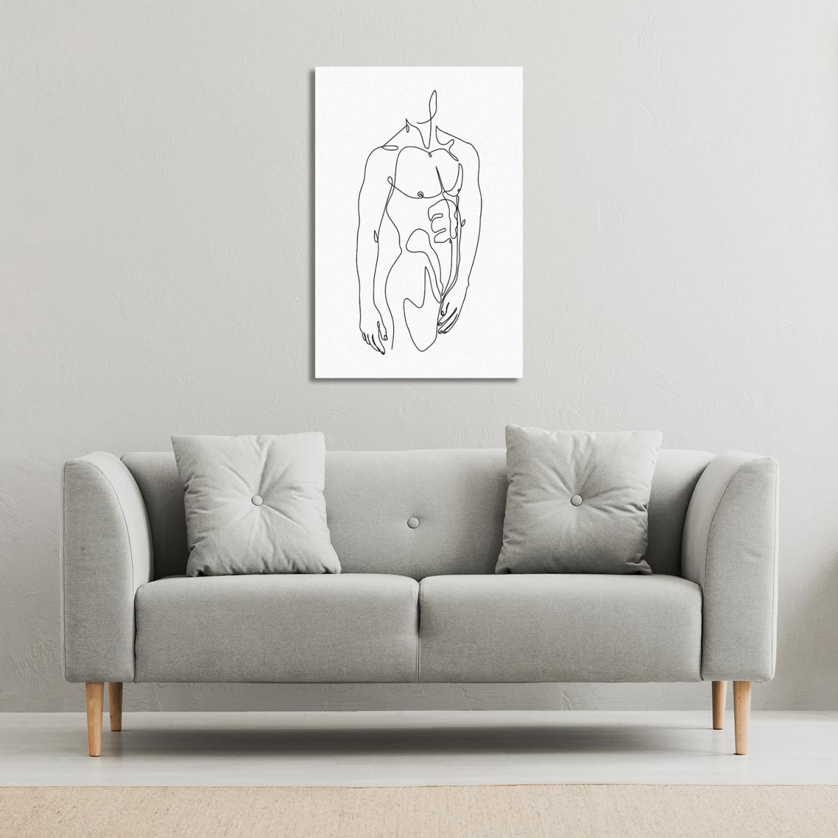 I love this line art of male body canvas print for its minimalist yet striking aesthetic, making it a versatile piece that can add a contemporary edge to various interiors. It works particularly well in modern or industrial-style spaces, where clean lines and monochrome palettes are key. It’s ideal for a living room or bedroom when you want a subtle statement piece that adds interest without overwhelming the space. Practical styling tips include pairing it with neutral or muted colour schemes to highlight the artwork, or contrasting it with textured cushions or throws for added depth. Keep the surrounding decor minimalist to allow the art to be a focal point, or go bold with other black-and-white pieces for a cohesive gallery look.