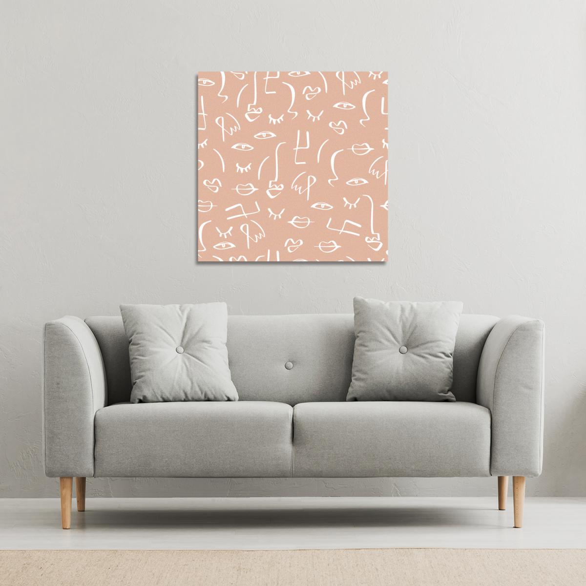 line drawing abstract faces Canvas Print - Pink / 127cm
