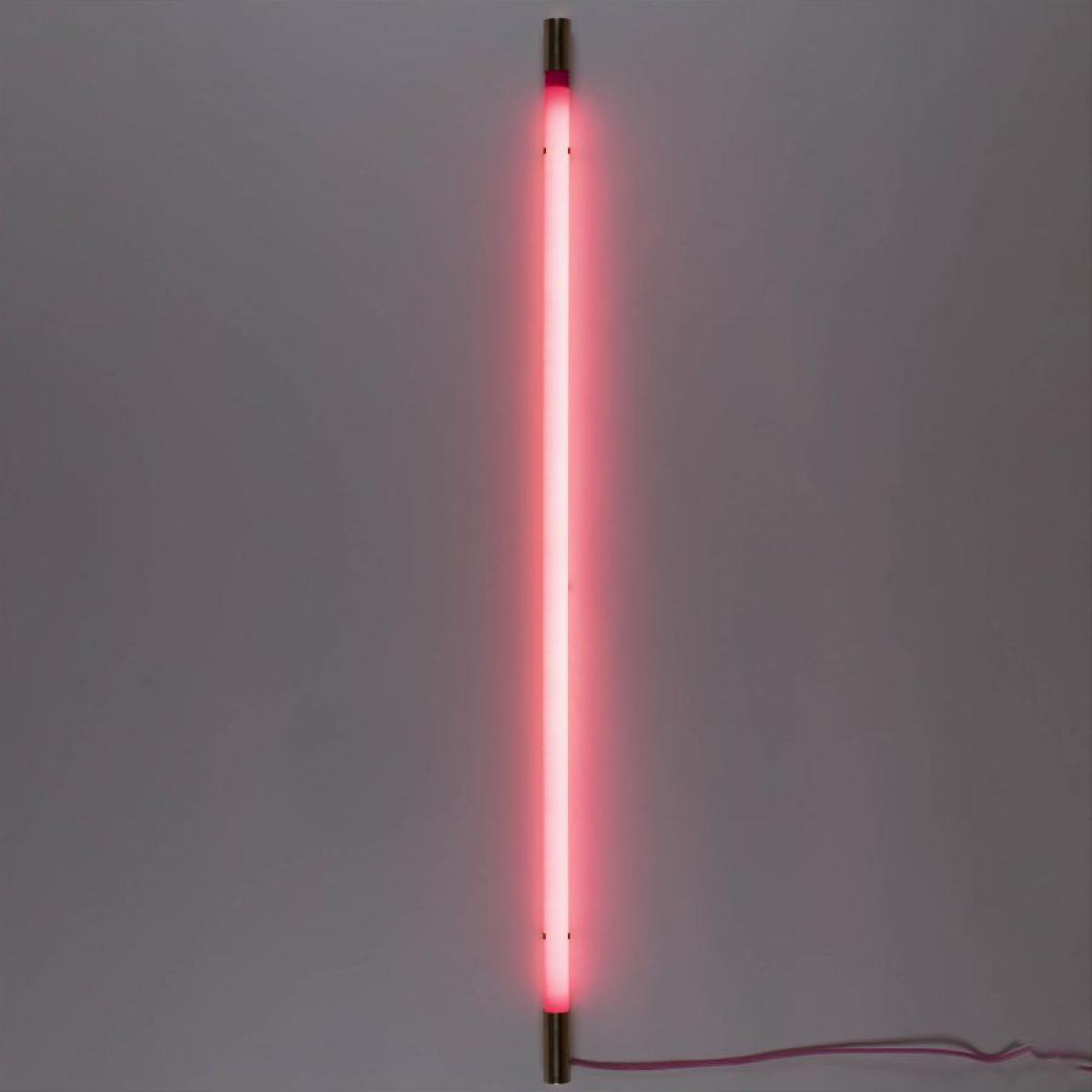 A fun and colourful lamp, lightsaber style! The Linea wall light is perfect for creating a super on-trend "arty" ambiance in your bedroom, living room or hallway. Linea diffuses a soft, ambient light. The end pieces of this long, illuminated glass tube boast elegant, golden metal fittings. This tube can be attached to the wall using the mounting rings (included) which hold the tube in the desired position (straight or at an angle) and provide secure stability. This wall light comes with a cable with a plug to connect to the mains. On/off switch on cable. You can transform the Linea wall light into a floor lamp by sliding the tube into the wooden base, sold separately. This base allows the tube to be placed on the ground in a vertical position.