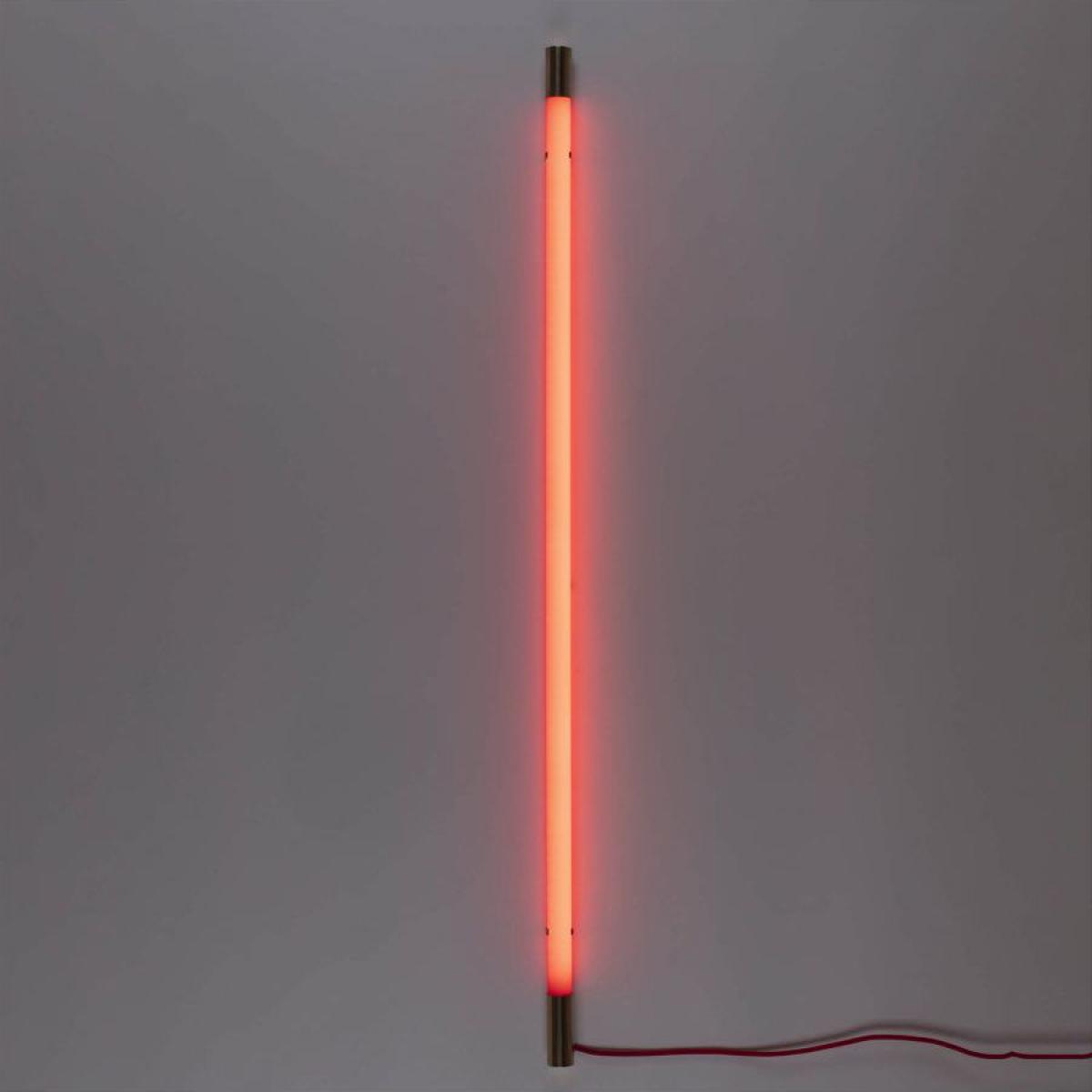 A fun and colourful lamp, lightsaber style! The Linea wall light is perfect for creating a super on-trend "arty" ambiance in your bedroom, living room or hallway. Linea diffuses a soft, ambient light. The end pieces of this long, illuminated glass tube boast elegant, golden metal fittings. This tube can be attached to the wall using the mounting rings (included) which hold the tube in the desired position (straight or at an angle) and provide secure stability. This wall light comes with a cable with a plug to connect to the mains. On/off switch on cable. You can transform the Linea wall light into a floor lamp by sliding the tube into the wooden base, sold separately. This base allows the tube to be placed on the ground in a vertical position.