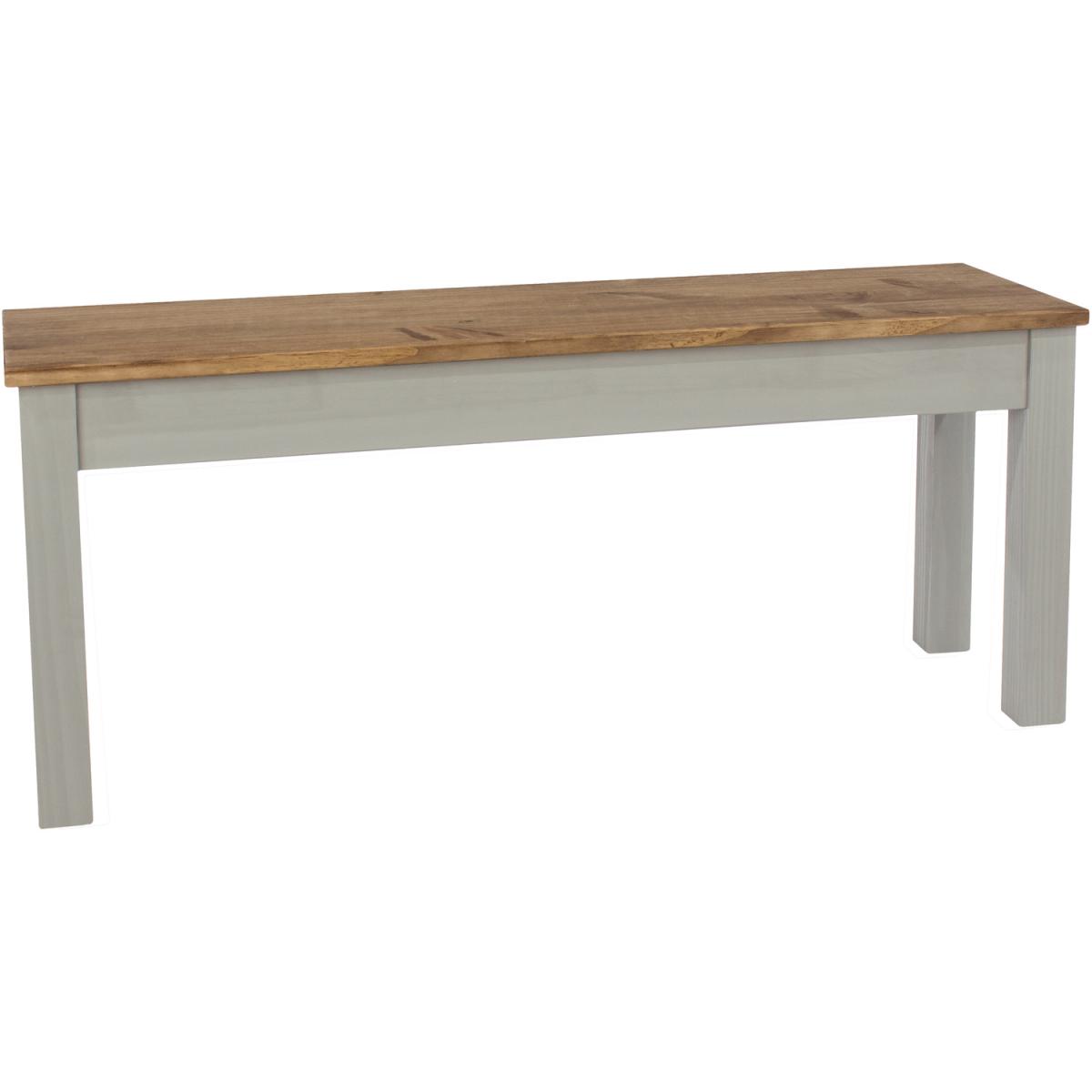 The Linea solid pine rectangular table, bench seat and two ladder back chairs set is finished in a grey washed wax finish with antique wax tops and seats. The table top has a contemporary plank design. The table, bench and chairs are constructed using steel assembly bolts for strength and stability, using an allen key which is supplied. This crisp modern design is ideal for your kitchen or dining area and will complement most decor. The bench seat tucks away under the table when not in use, meaning you can maximise your available room space, or even place the table against a wall and pull out when extra seating is needed. The combination of a bench seat and chairs offers you flexibility. Maximum weight capacity for bench seat and chairs is 120KG.. Dimensions - Table 150w x 75d x 75h, Bench seat 135w x 30d x 45h, Chair 40.5w x 43d x 73.6h.