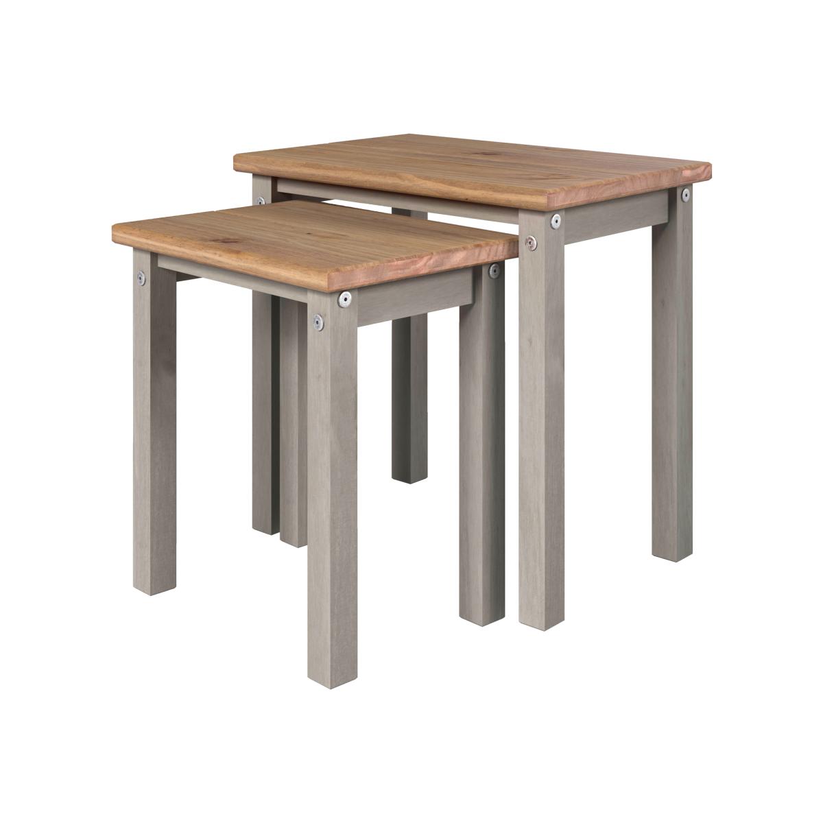 Linea grey nest of 2 tables - Grey washed wax and antique wax