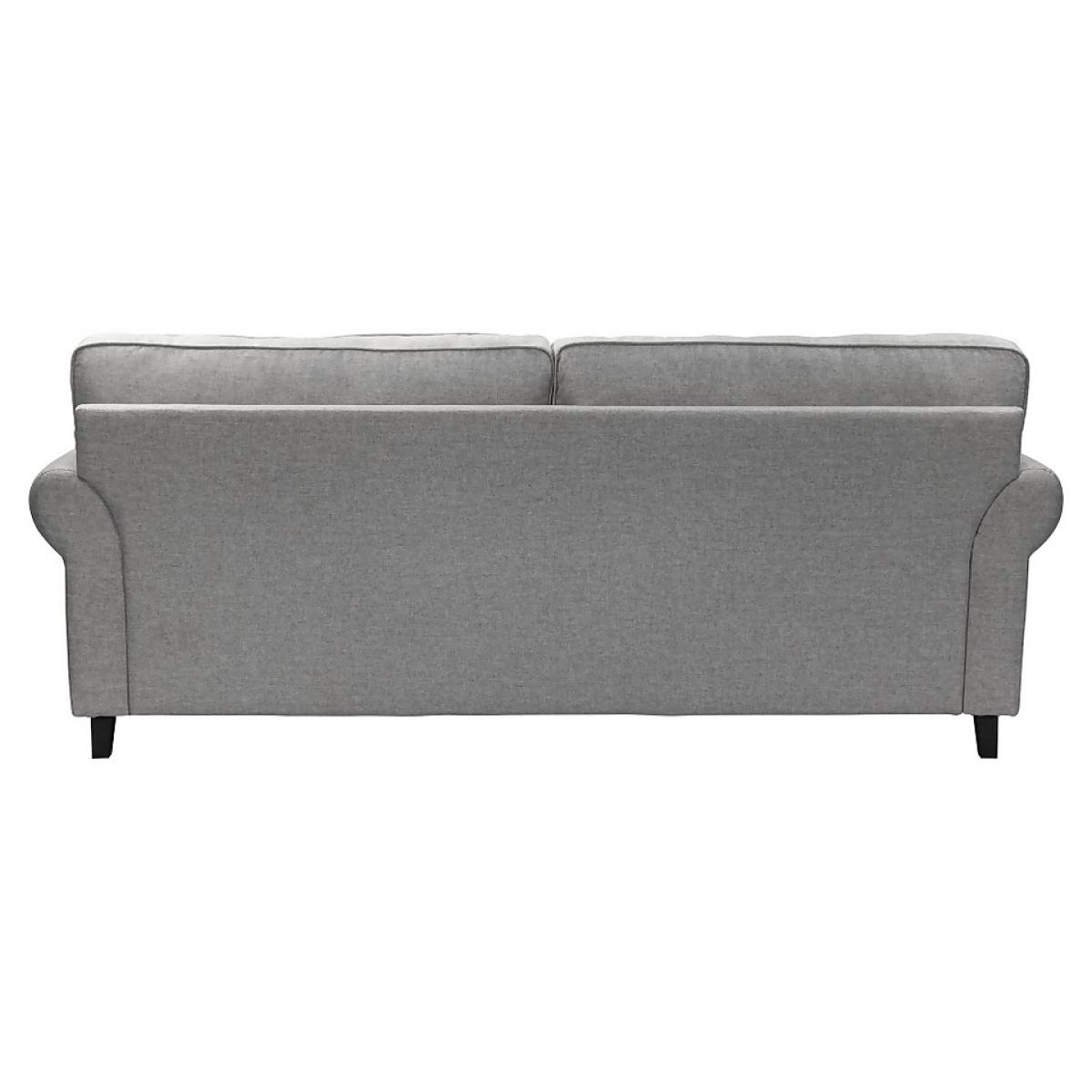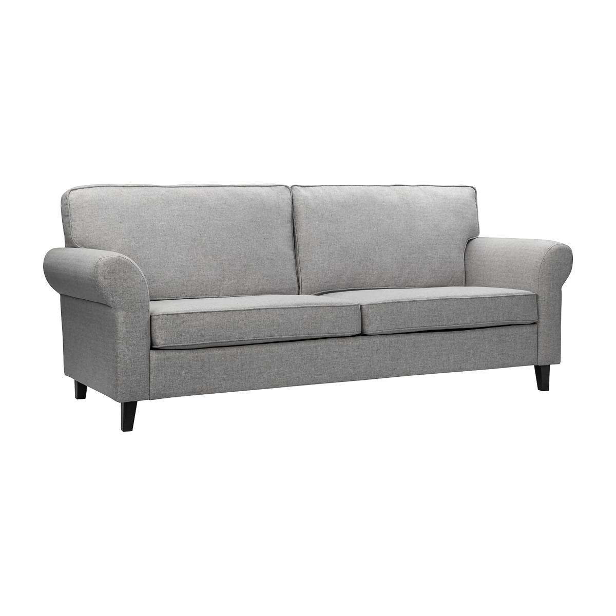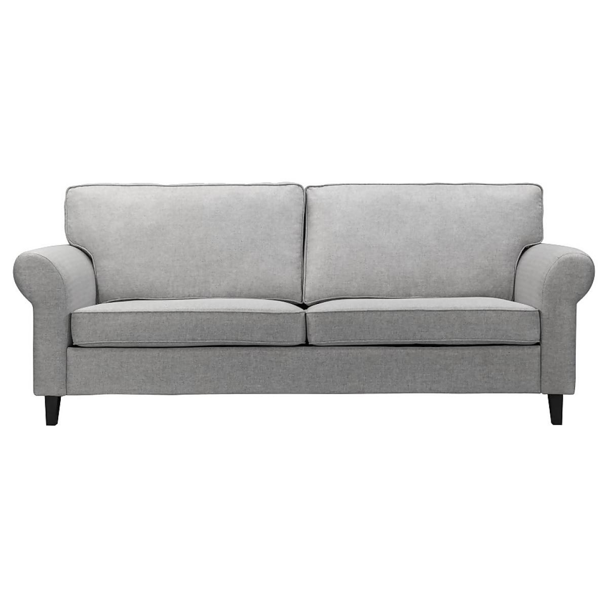 Make the everyday a little more elegant with Linea. Simple yet stylish, this grey 3 seater sofa has a traditional design complete with classic scroll armrests and tapered dark wood legs. The foam and fibre filled cushions are upholstered in woven fabric for added comfort.