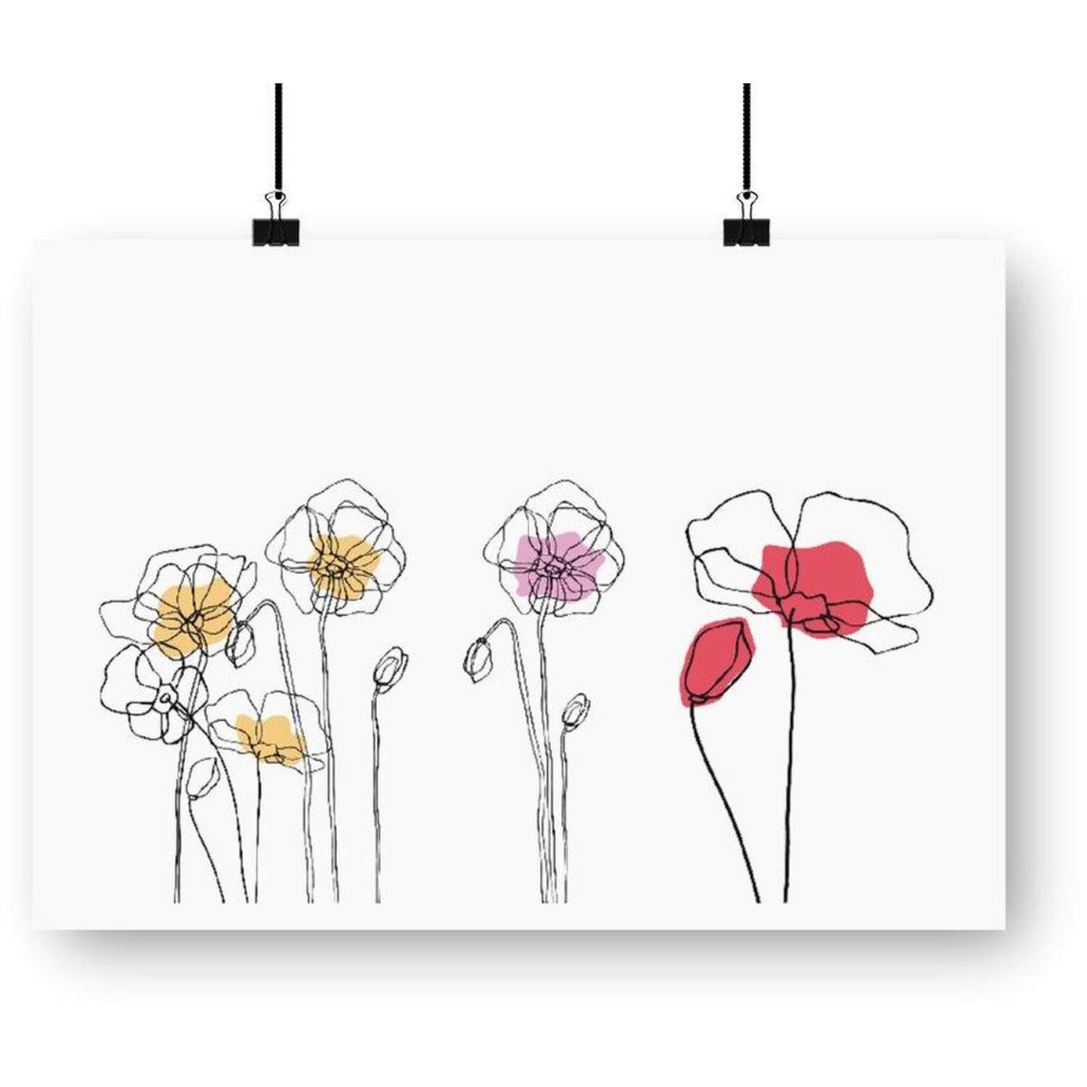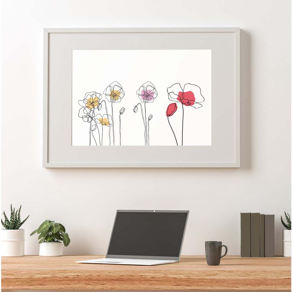I love this wall art for its minimal yet vibrant appeal, making it versatile for various interior styles. It works particularly well in contemporary or Scandinavian spaces where clean lines and subtle colour accents are key. The white background with the colourful floral outline creates a fresh and modern look, adding a touch of nature without the maintenance of real plants. Practical styling tips include pairing it with neutral tones and natural textures like wood or linen to keep the focus on the artwork. It’s ideal for brightening up a living room, hallway, or even a workspace, providing visual interest without overwhelming the space.