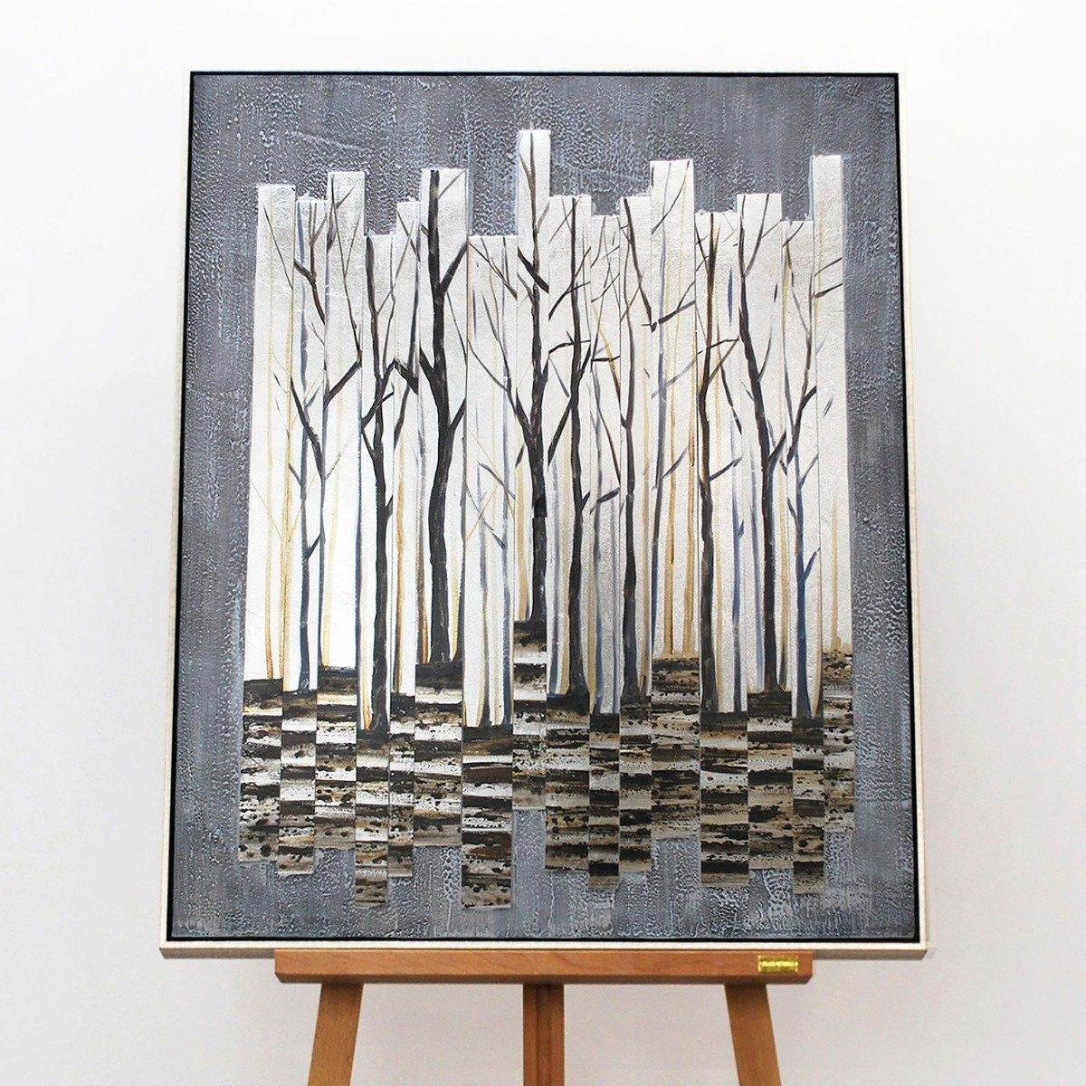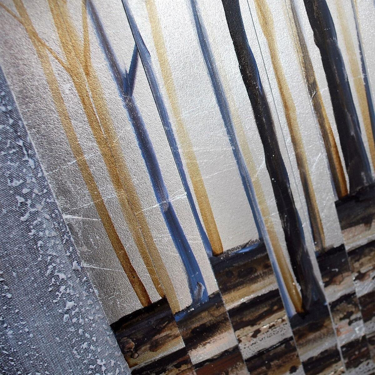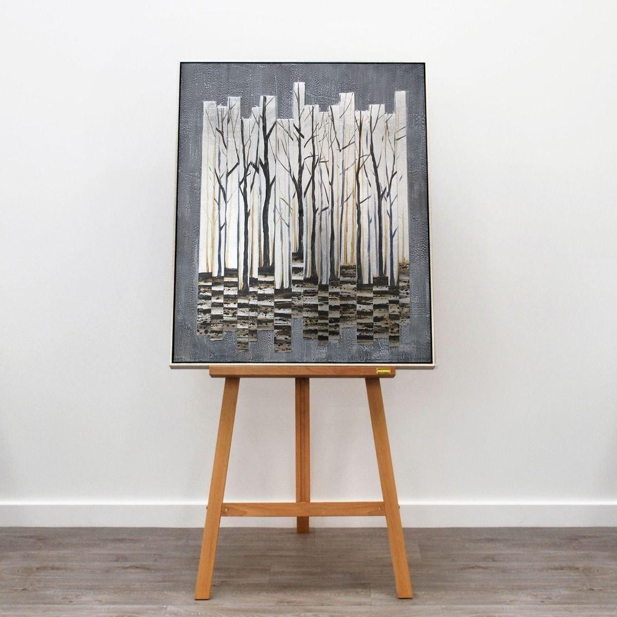 Linear Birch Silver Canvas with Brushed Silver Frame 80x100cm