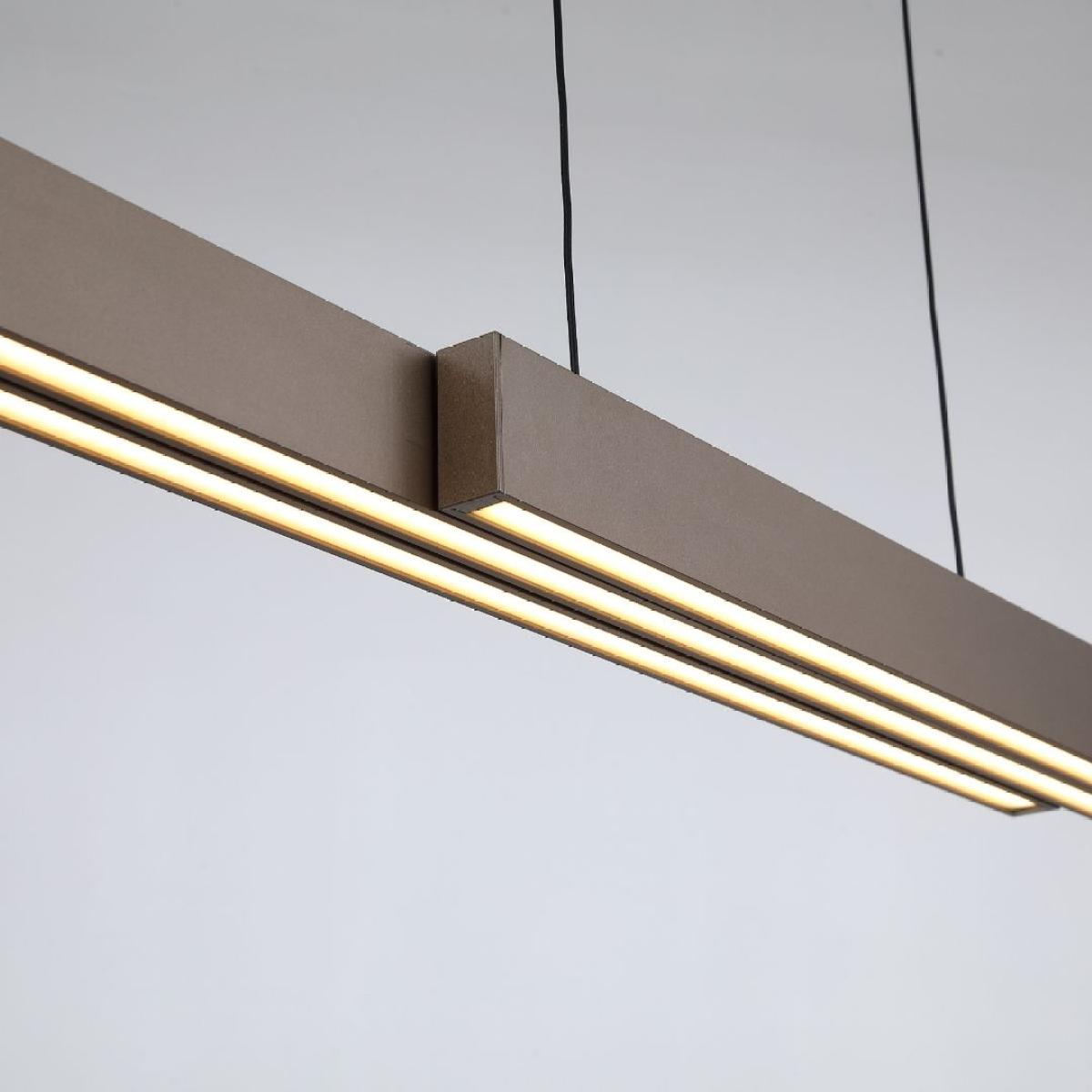 Achieve the perfect balance of style and function with the Linear Brown LED Ceiling LED Pendant, designed to adapt effortlessly to your space. Its innovative design allows the three interconnected panels to slide smoothly from a compact 95cm to an impressive 150cm width – simply slide the panels apart or together to suit your layout. Finished in a latte-toned aluminium, the minimalist frame houses frosted acrylic diffusers that emit consistent, glare-free illumination. Selectable colour temperatures and dimming functionality offer complete control over the mood, whether you’re hosting, working, or winding down. Ideal for modern dining rooms, sleek kitchen islands, or commercial interiors, this versatile pendant is a true centrepiece – blending adaptable design with refined aesthetics to meet the evolving needs of contemporary spaces.