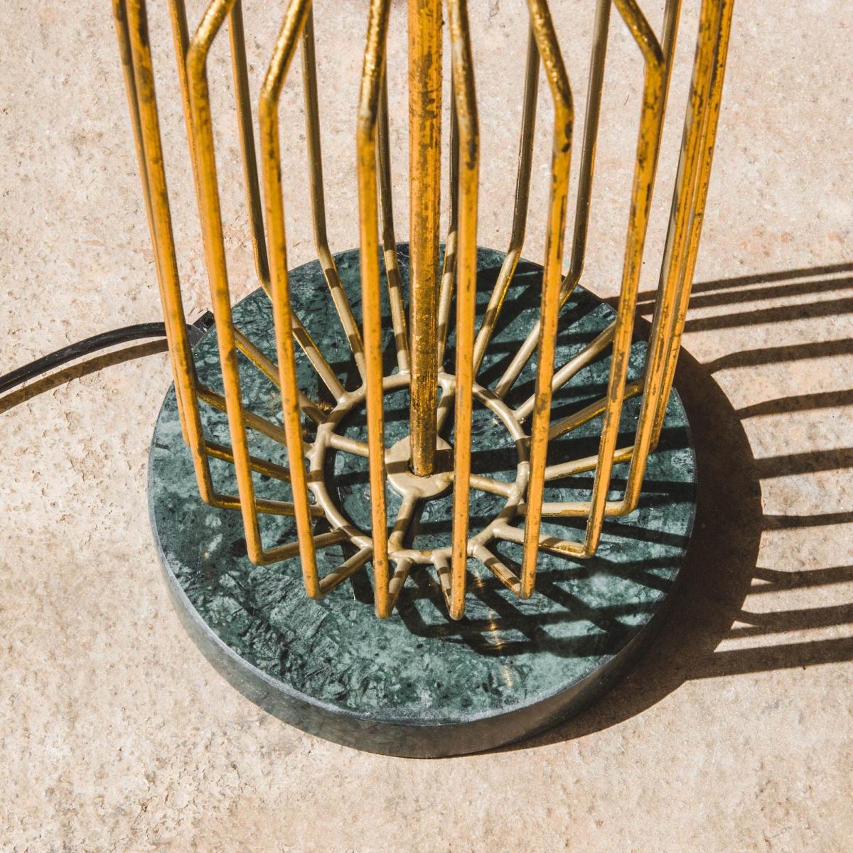 A floor version of our bestselling linear table lamp, featuring a stacked cylinder design crafted from brass rods with an antiqued gold finish. Complete with a circular green marble base, this striking floor lamp perfectly combines a mix of materials to create an opulent statement piece.