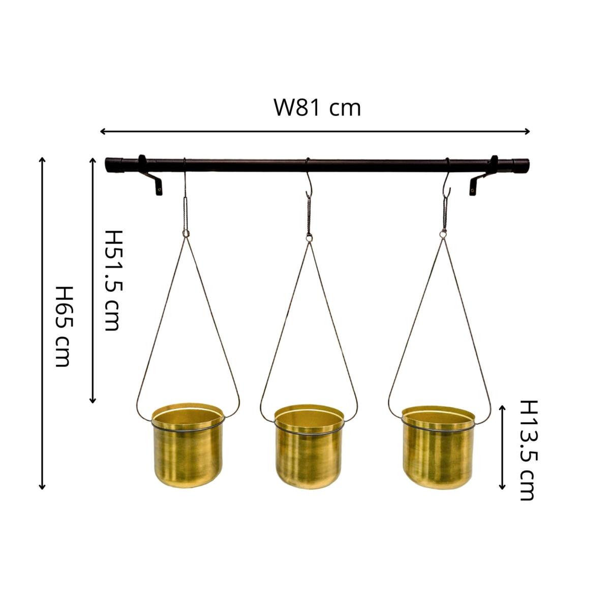 * Premium quality and lightweight* Set of 3 plant pots* Suitable for indoor use* Hanging planter* Spun metal Bring a new lease of life to your décor with our Linear hanging planters. Inspired by current trends and completely stable in sunlight, this unique accent piece features an adjustable design—simply mount your beloved cacti plants at your chosen heights to achieve a unique interior statement!