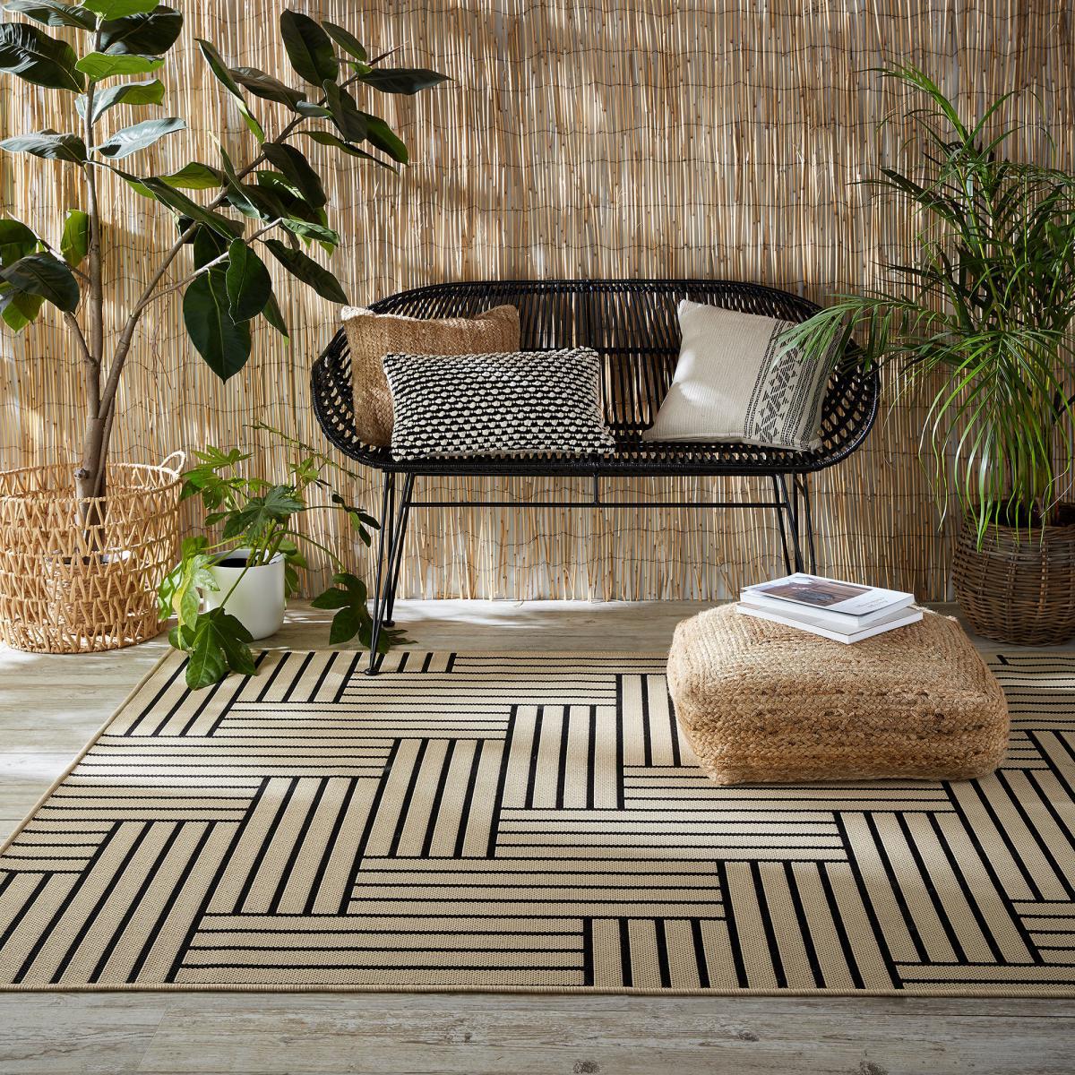The Linear Indoor Outdoor Rug pairs a neutral colour palette and bold geometric design to inject contemporary style to both indoor and outdoor spaces. With a 100% polypropylene pile, the Linear Indoor Outdoor Rug is weather resistant and easy to care for, making it an ideal option for on-the-go homes. The low-profile composition is ideal for busy spaces or sitting under furniture. We love using the Linear Indoor Outdoor Rug to define a modern, outdoor social zone, or in kitchen and dining spaces indoors. Re-roll your rug pile out for 24 hours to reduce curling. Regularly turn to ensure even wear. Safe for use on a heated floor. An anti-slip mat will help prevent slipping. Blot spills immediately with a clean, dry white cloth. Do not rub. Do not place this rug near an open fire. Please do not leave children or infants unattended.