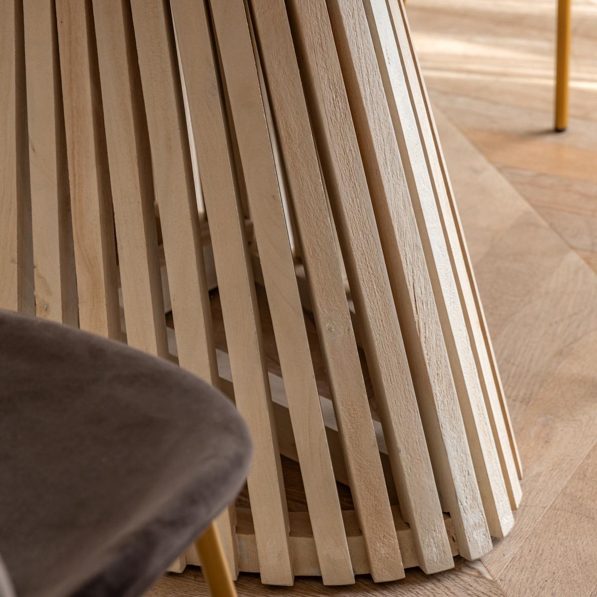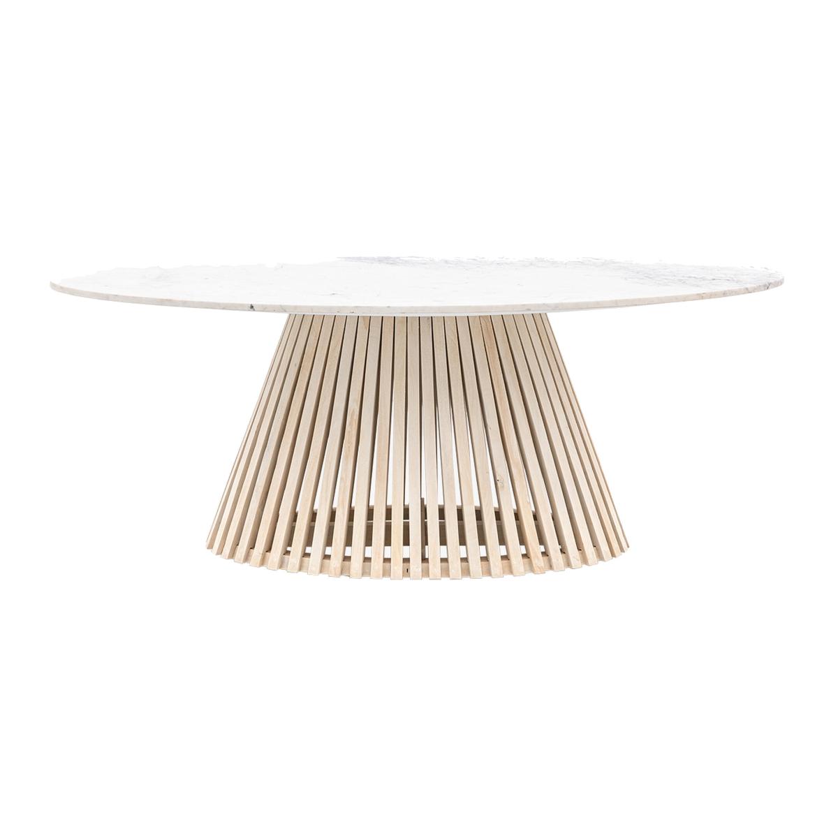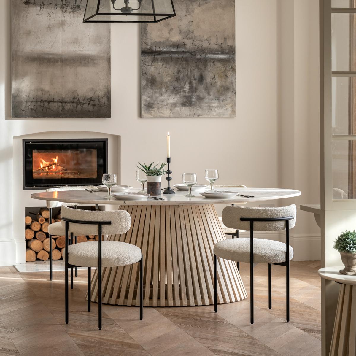Add a touch of glam to your home with the Linear Marble Oval Dining Table. Featuring a whitewashed wooden slatted base combined with a luxe marble top, this piece will elevate your dining experience to new heights.
