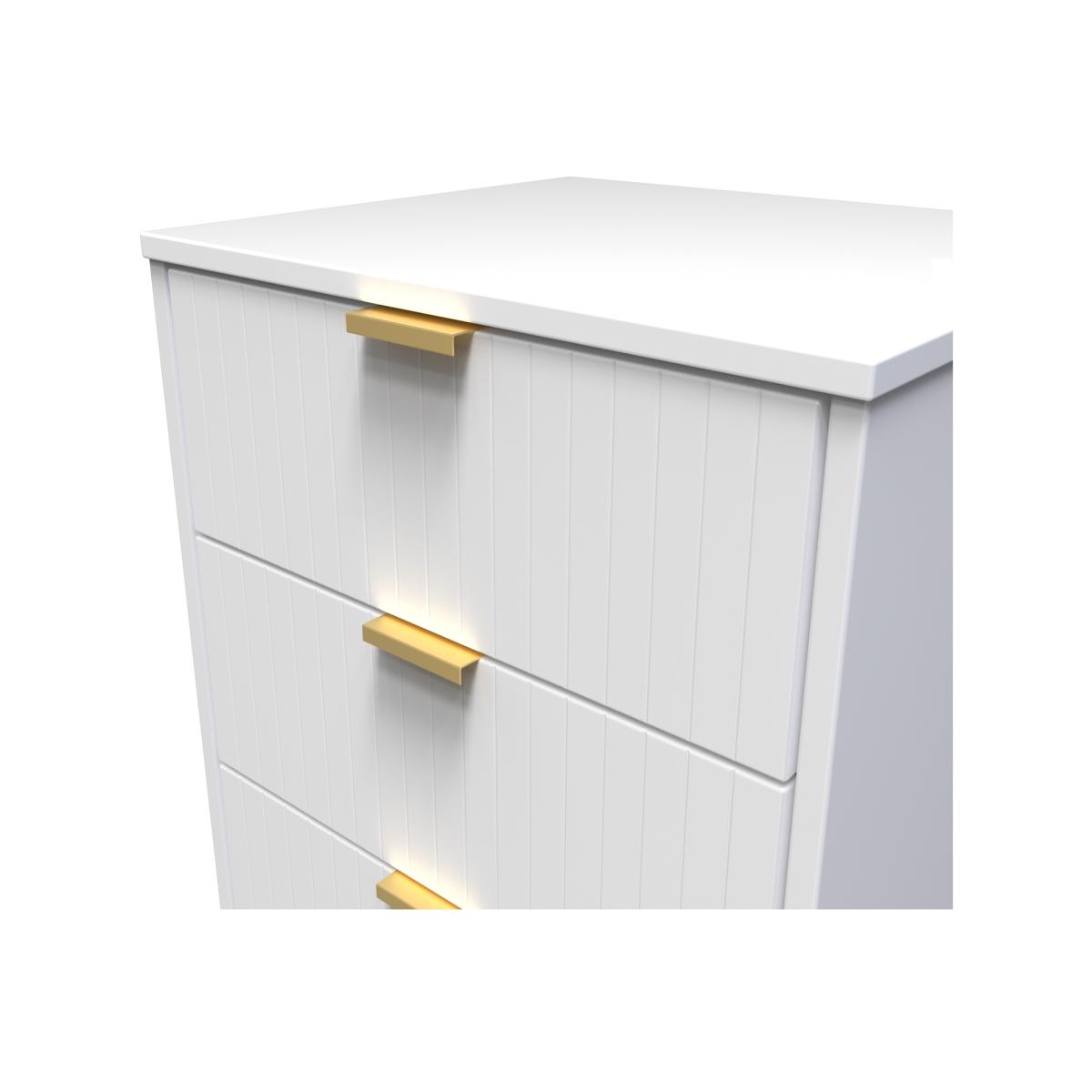 This 5 drawer chest of drawers is practical and stylish. Perfect for any home as a free standing storage unit. A modern and distinctive range. Named for the unique "Linear" patten of the drawer and door fronts. Also features Gold Metal Handles and Gold Hairpin Legs. Comes in a wide range of colours including eye cathching two tone colour combinations. All our furniture is made in the United Kingdom, to the highest quality. It is delivered direct to your location of choice by one of our two man delivery teams, and comes fully assembled (although legs may be removed to prevent damage in transit).