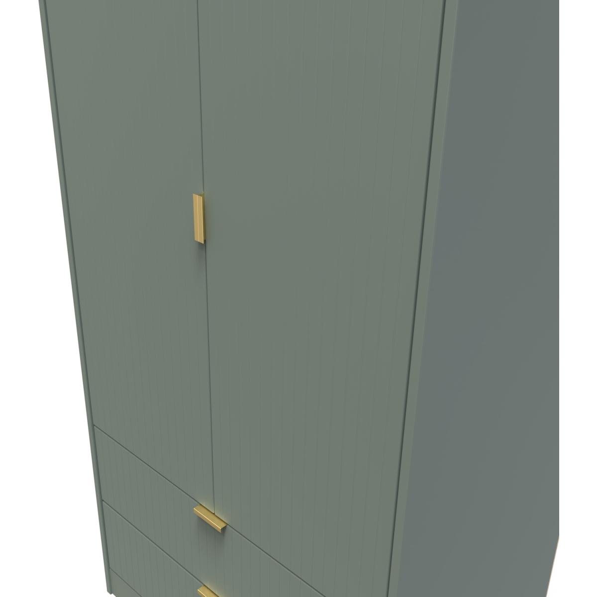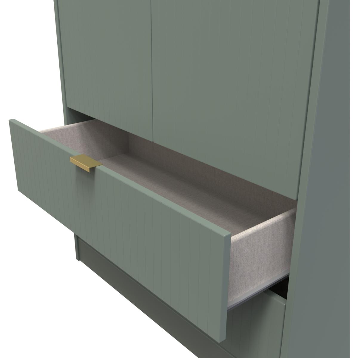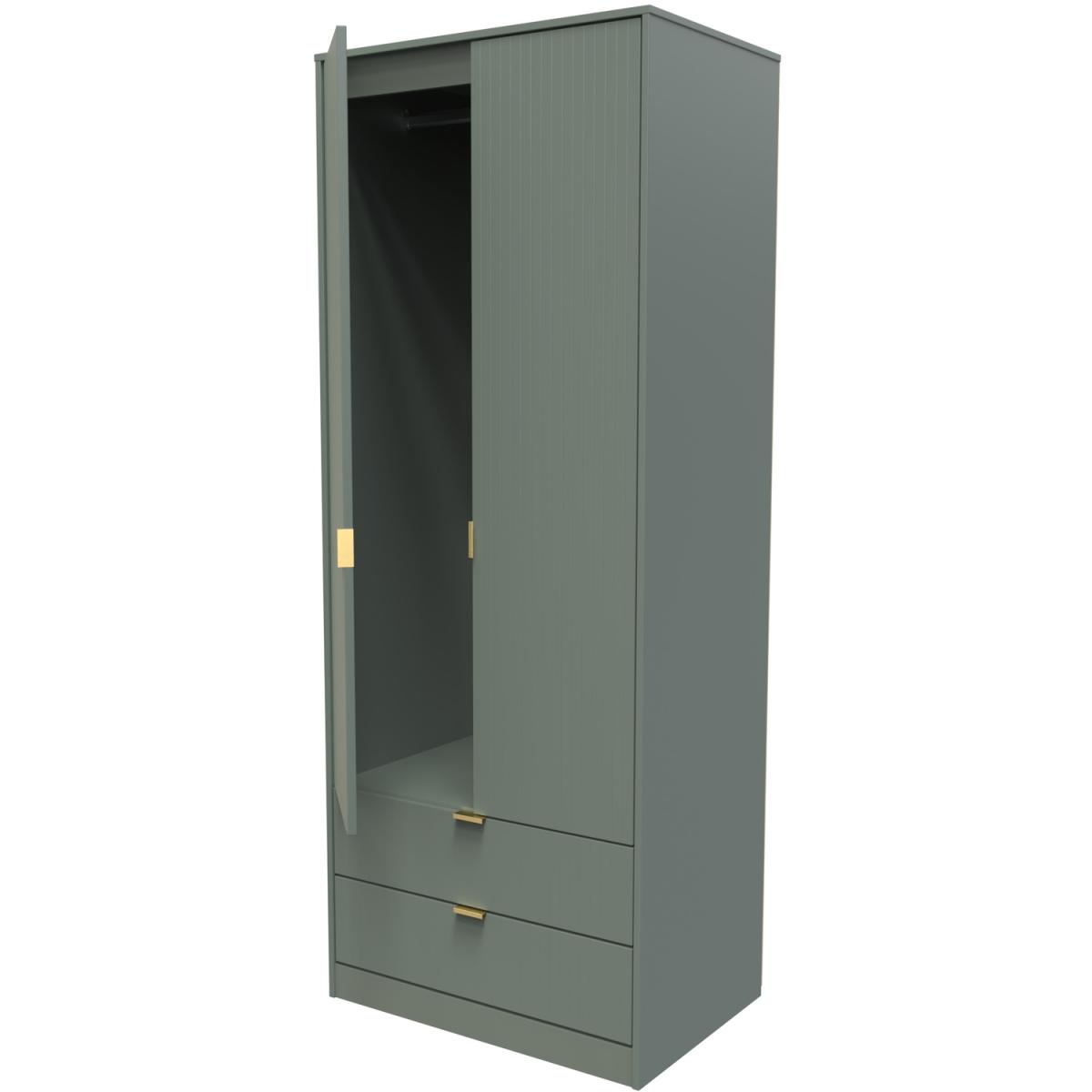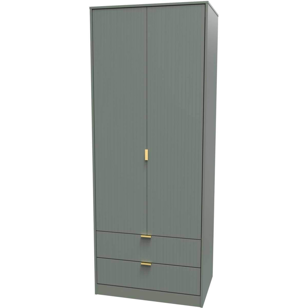This tall double door wardrobe is perfect for any bedroom. Features the added practicality of 2 full width drawers. A modern and distinctive range. Named for the unique "Linear" patten of the drawer and door fronts. Also features Gold Metal Handles and Gold Hairpin Legs. Comes in a wide range of colours including eye cathching two tone colour combinations. All our furniture is made in the United Kingdom, to the highest quality. It is delivered direct to your location of choice by one of our two man delivery teams, and come full assembled (although legs may be removed to prevent damage in transit).