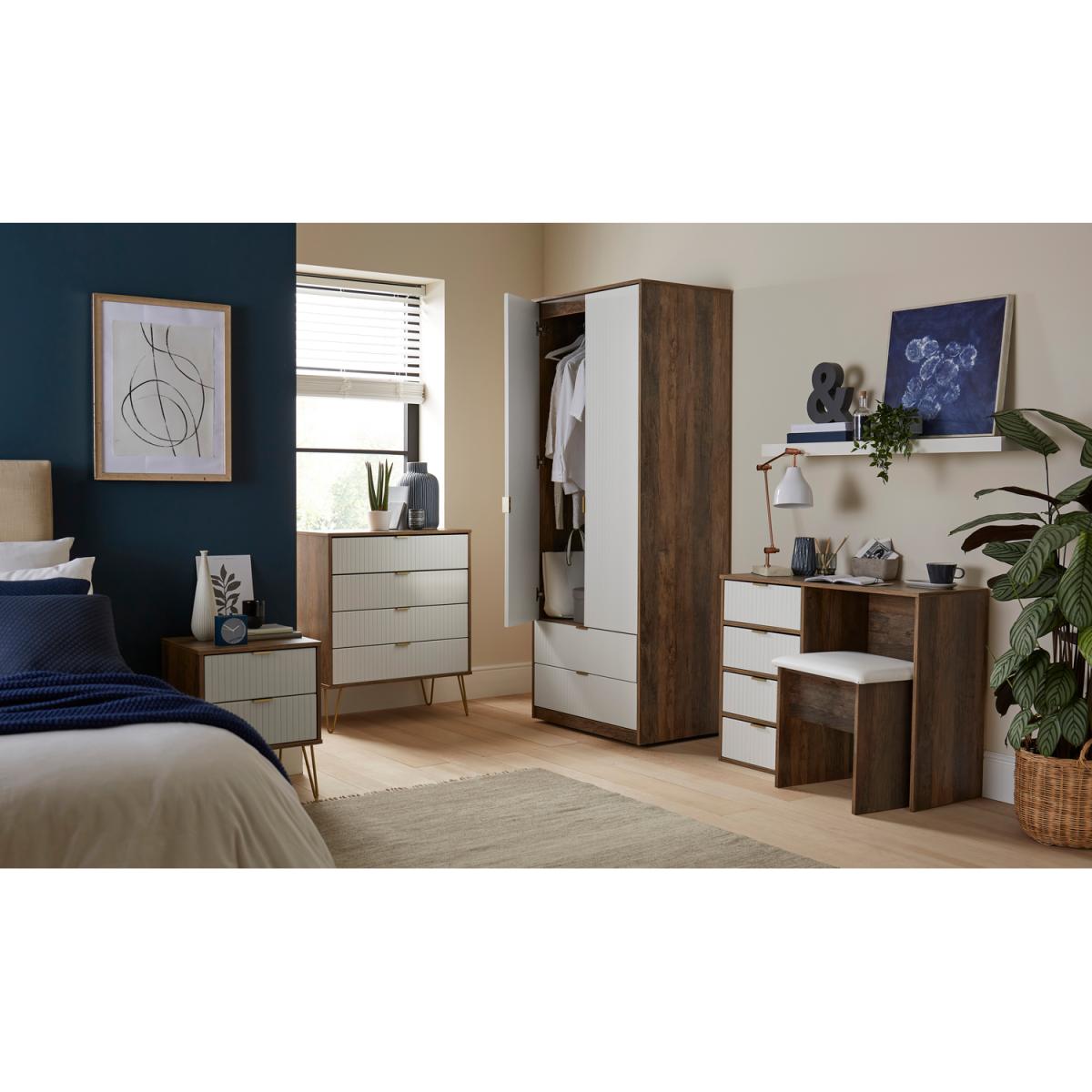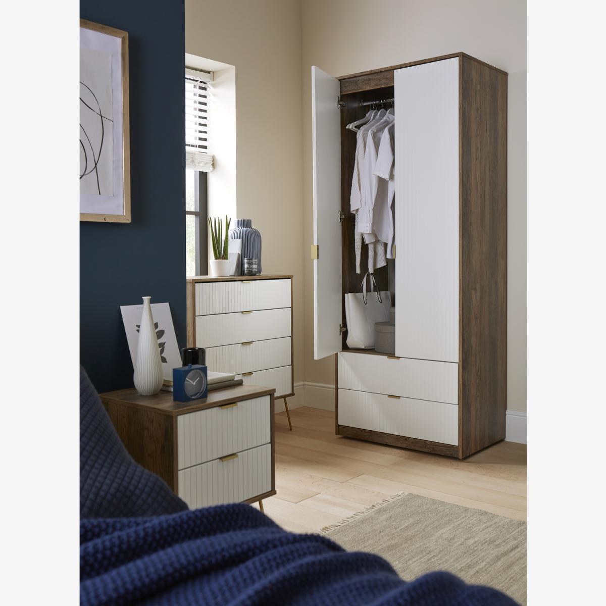 This tall double door wardrobe is perfect for any bedroom.. A modern and distinctive range. Named for the unique "Linear" patten of the drawer and door fronts. Also features Gold Metal Handles and Gold Hairpin Legs. Comes in a wide range of colours including eye cathching two tone colour combinations. All our furniture is made in the United Kingdom, to the highest quality. It is delivered direct to your location of choice by one of our two man delivery teams, and come full assembled (although legs may be removed to prevent damage in transit).