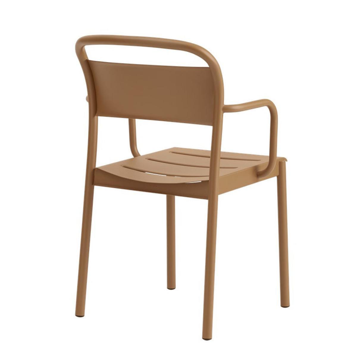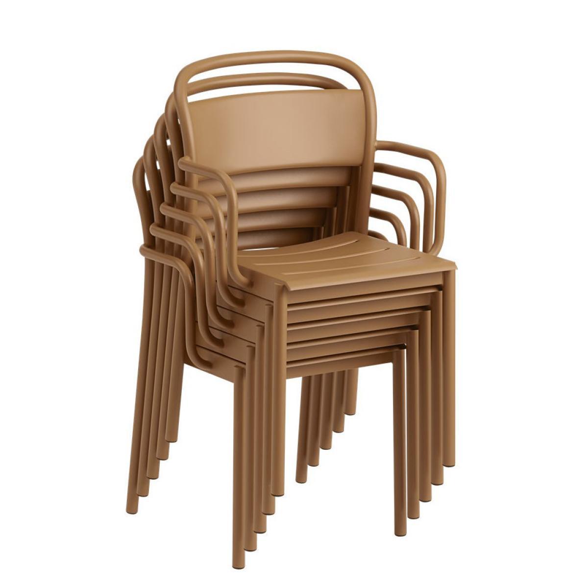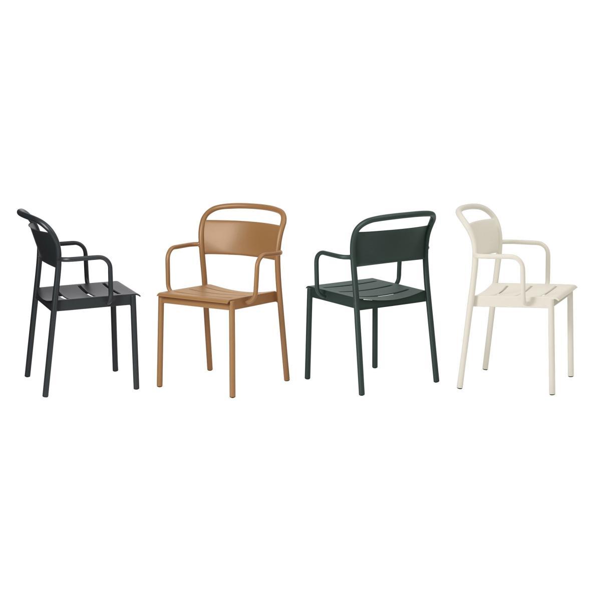 The new Scandinavian style by Muuto for your gardens and terraces! The Linear collection by Danish designer Thomas Bentzen is characterised by its pure, refined, contemporary design. Robust and durable, this steel furniture has undergone specific treatments so that it perfectly resists bad weather and UV rays. All the sophistication of Linear is focused on the care taken over the details: the front edge of the folded seat, the fine slits that allow water to flow away. The Linear stackable armchair presents an elegant contrast of shapes. The strict, linear lines of the front legs and seat are combined with the rounded armrests and backrest. Wide and slightly curved, the ergonomic backrest provides enveloping comfort. The Linear collection consists of tables with matching chairs. Can be accessorised with a seat cushion sold separately.