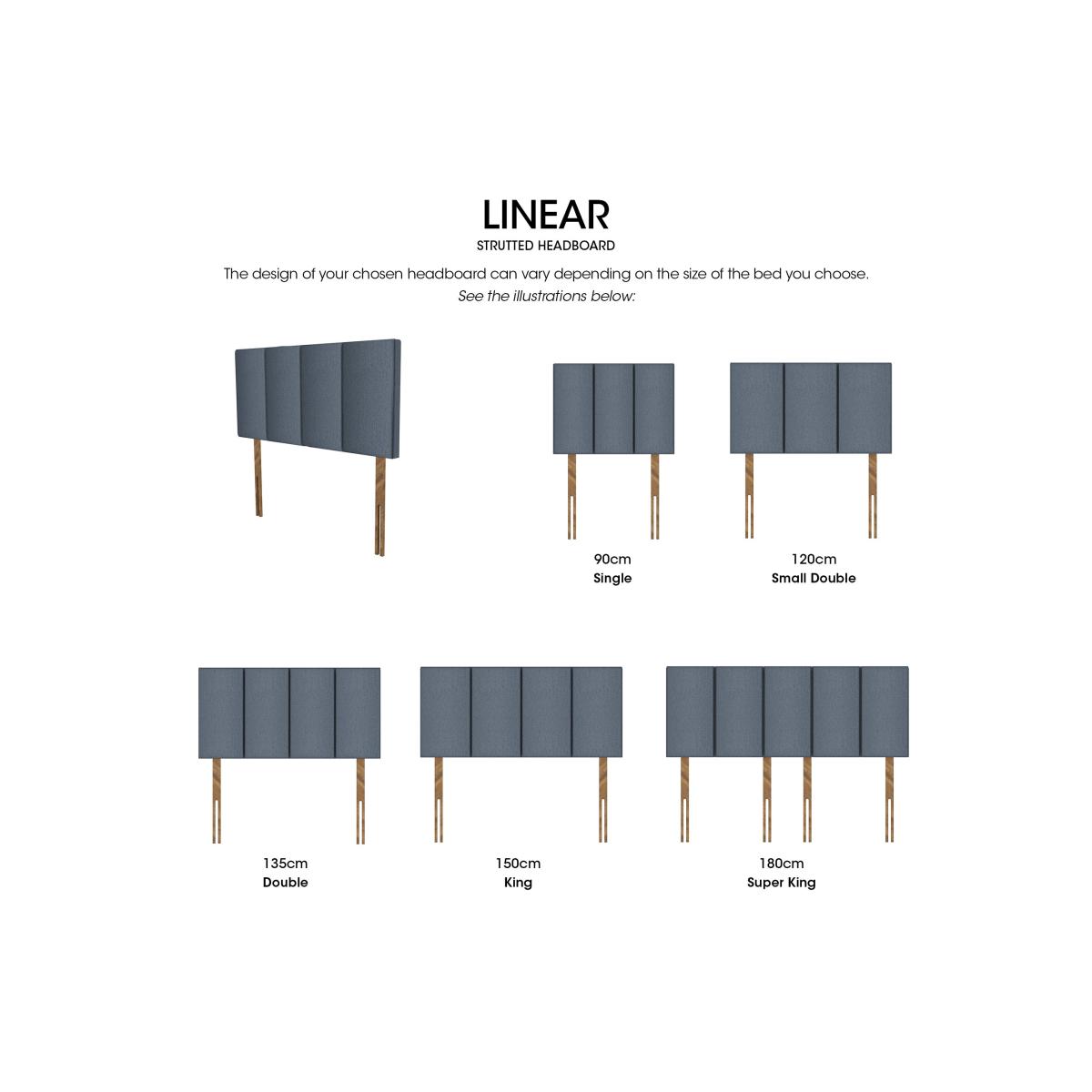 Discover The Artisan Collection, designed to bring handcrafted luxury and style to your bedroom. This premium range includes a selection of divan bases – from traditional platform tops offering a firmer feel to sumptuous pocket sprung options for enhanced mattress comfort. Many divan bases are available with storage drawers, in both standard and on-trend shallow designs. Complement your divan with one of the collection’s striking floor-standing headboards, including standout winged designs. Each piece in The Artisan Collection is beautifully upholstered in a wide choice of luxury fabrics and handcrafted in the UK, ensuring exceptional quality and elegant style for your sleep sanctuary. Simple, modern and very stylish, our Linear strutted headboard features wide-spaced vertical fluting and generous cushioning. Handcrafted for Furniture Village. Why you'll love it Elegant modern headboard with minimalist fluting. Beautifully upholstered for a luxurious look. Made with sustainable FSC-sourced wood. In a choice of beautiful fabrics. Handcrafted in the UK. Also available as a floor standing headboard. Find the Linear standard strutted headboard only at Furniture Village. What you need to know This strutted headboard is supplied with bolts to attach it to a divan base. Available in single, small double, double, king and super king sizes. 130 cm tall. Clean regularly using a soft brush or vacuum with the curtain attachment. Deal with any spills promptly. Professional cleaning advised for oil- and grease-based stains. Some fabrics can show wear on areas of more use or in direct sunlight. Item code: LIN-H130--003