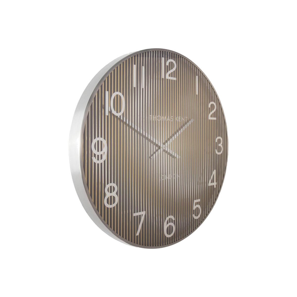 A visually striking and bold design, the Linear Wall Clock instantly adds flair and personality to your space. Just watch it change colour as you walk past. Why you’ll love it. An ingenious design with a colour-changing holographic effect. Bold, contemporary and perfect for modern design lovers. Holographic effect created by printing on a glass lens in layers. Available in teal and orange or gold finishes to complement your décor. Made with care for Furniture Village. What you need to know. Teal and orange or gold clock face. Brushed metal or metallic silver finish casing. Contrasting white numerals and hands. Quartz movement with audible ticking noise. Requires 1 x AA battery (not included). Dimensions. Width: 76 cm (30 inches). Depth: 6 cm (2 inches). Height: 76 cm (30 inches).