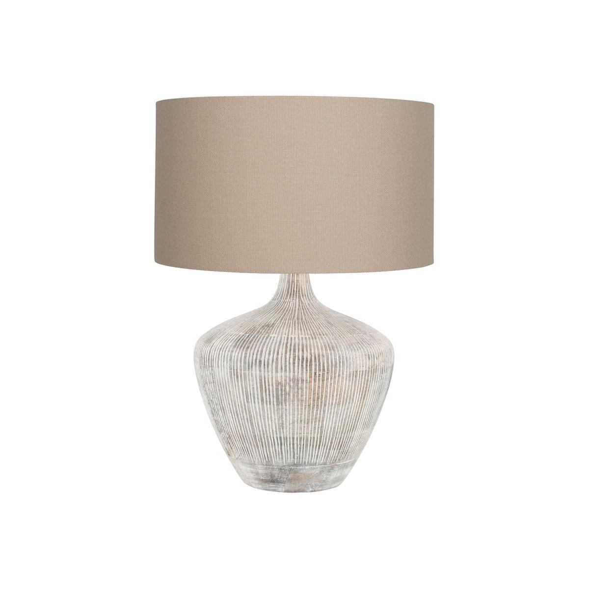 Design. Rustic and neutral in colour, the Linear White Wash Table Lamp is a versatile option that will suit many interior schemes. A very stylish lighting option that nods to minimalist design. Although simple in colour and shape, the linear texture to the body of this lamp will add dimension to your space and take your home from flat to fab. Place in your living room or dining room for a welcoming ambiance.