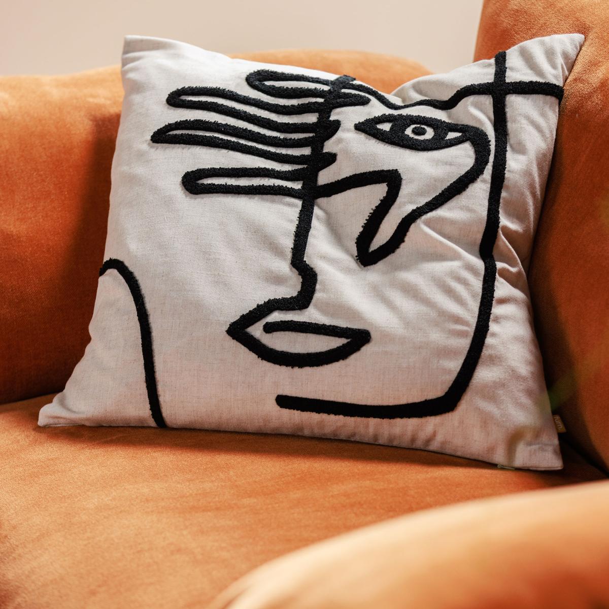 Ultra-modern and stylish, the Lined Face Cushion is the perfect fit to complete your contemporary furniture arrangement. The neutral cushion is detailed with a black abstract lined face, creating a monochrome effect, adding texture, charm and elegance to your living space.
