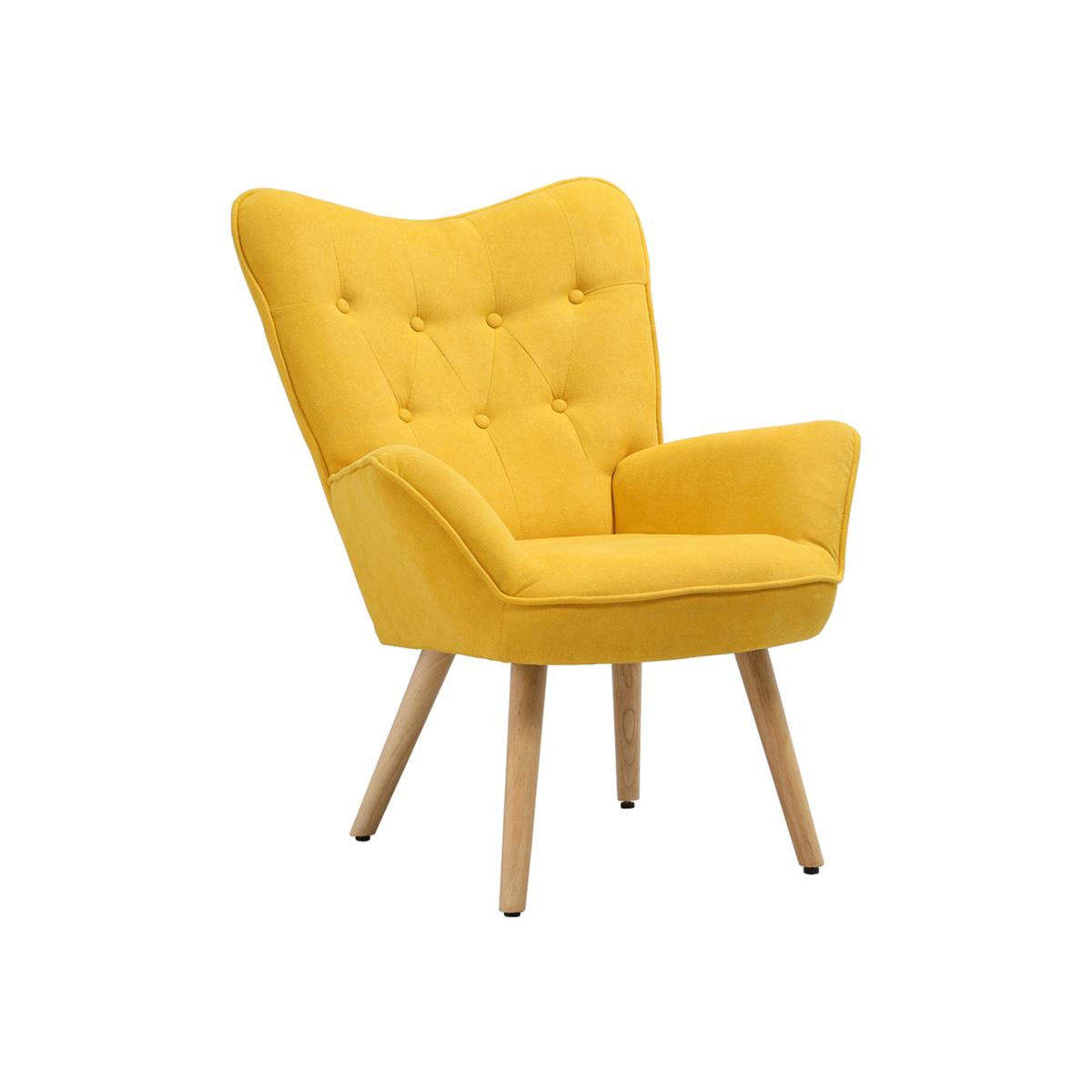 Linen Armchair with Wooden Legs - Yellow