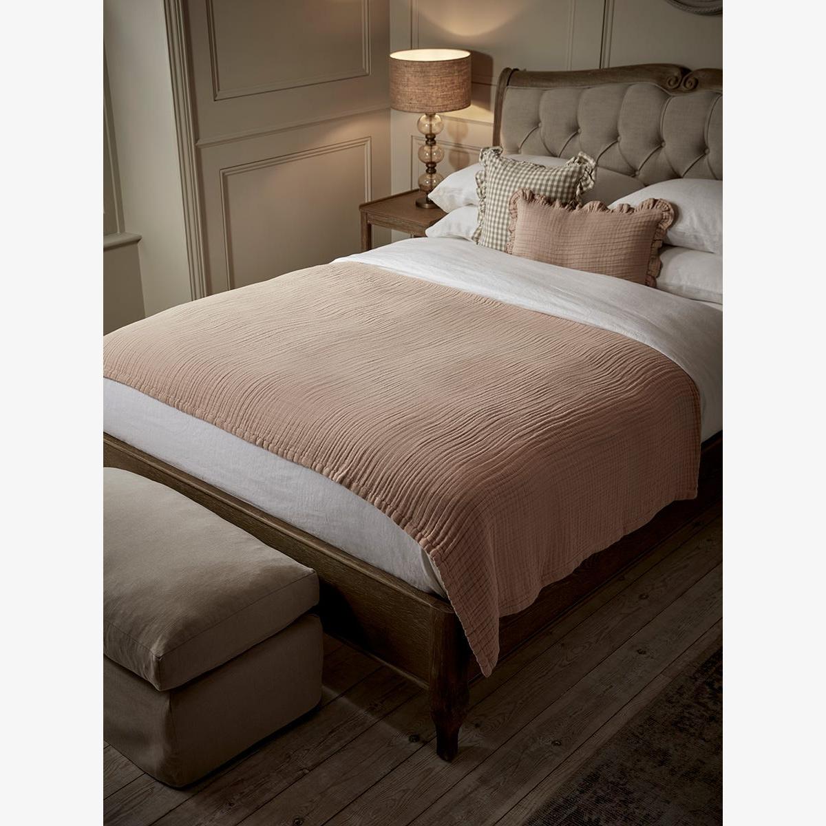 Crafted from a luxurious linen and cotton blend, this bedspread invites tranquility and rest with its supersoft quality. In a dusky rose tone, with delicate textural detailing, this bedspread adds elegance and romantic appeal to your bedroom.