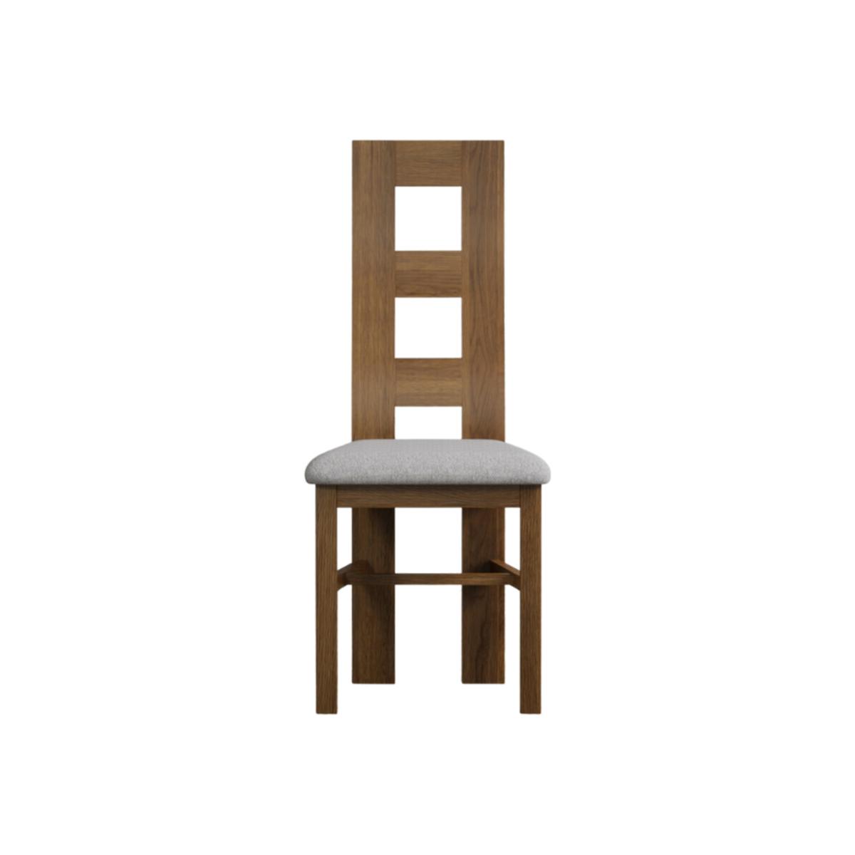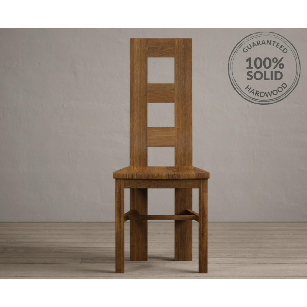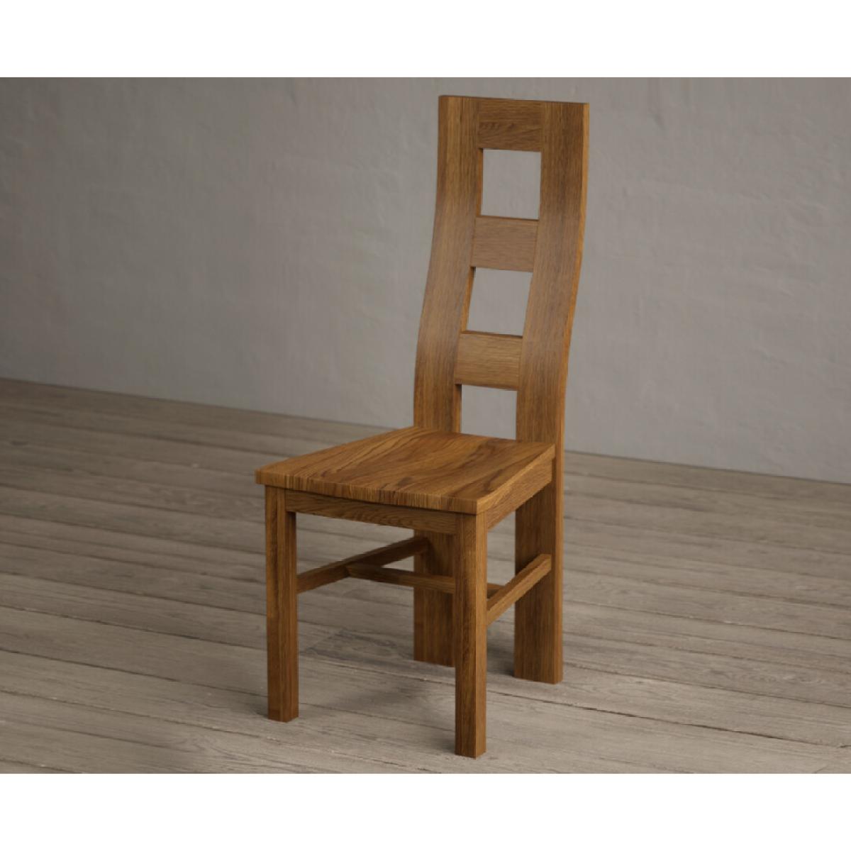 The Rustic Solid Oak Flow Back Dining Chairs with Rustic Oak Seat Pad are solid oak dining chairs with a rustic finish and matching oak seat pads.