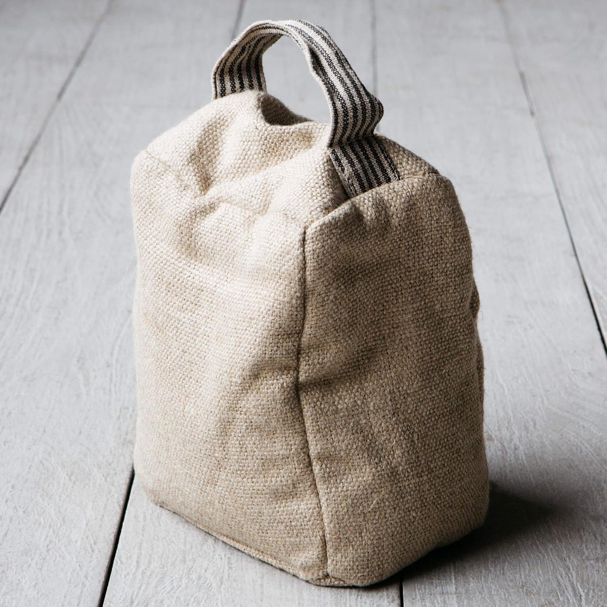 Prop your doors open with a weighted stopper, featuring a convenient handle and available in soft linen.