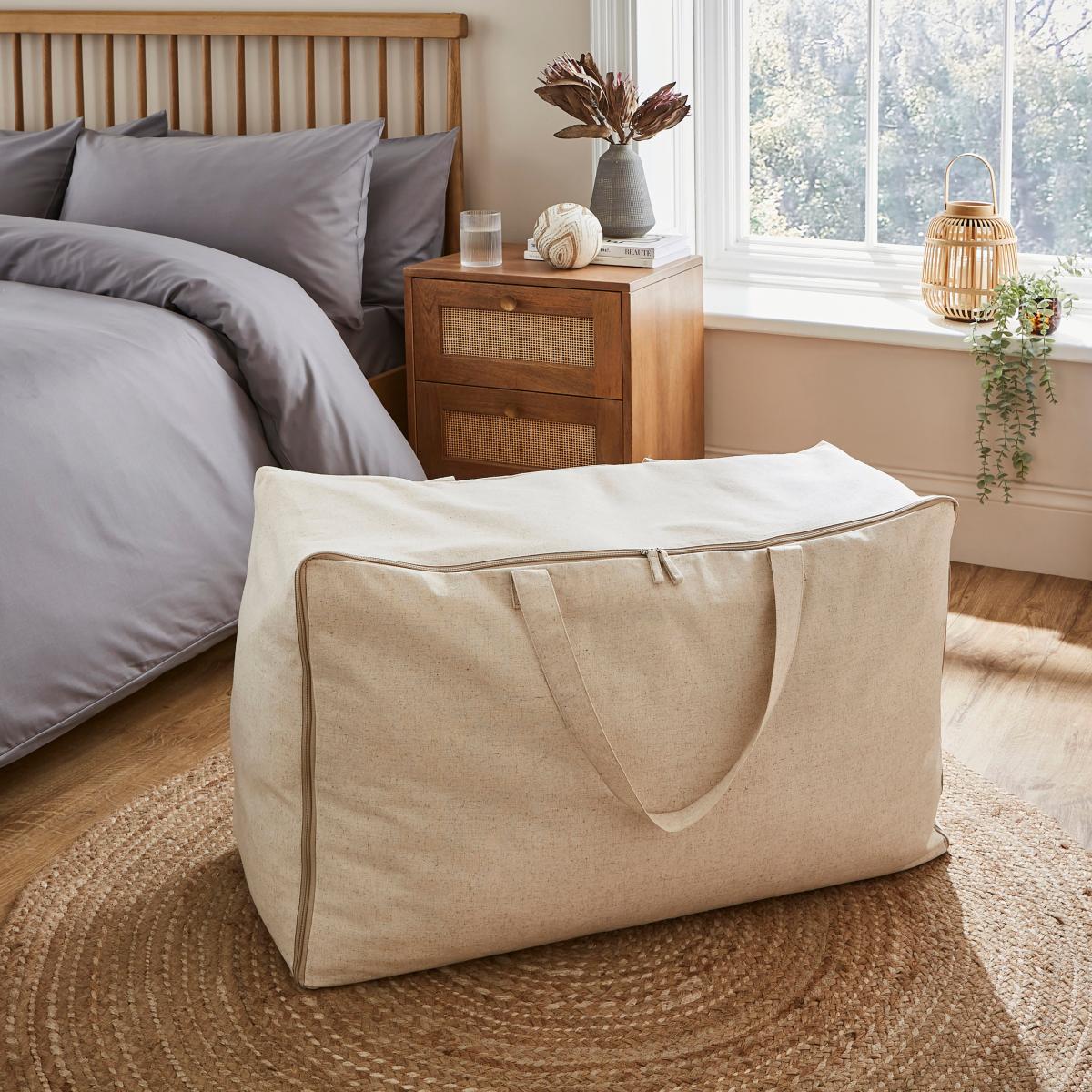 * Easy storage* Collapsible* Stylish design* Linen material Keep your extra bedding neatly stored in this elegant linen duvet storage bag. Collapsible for easy storage, it ensures your duvets stay fresh and organised while adding a touch of minimalist charm.