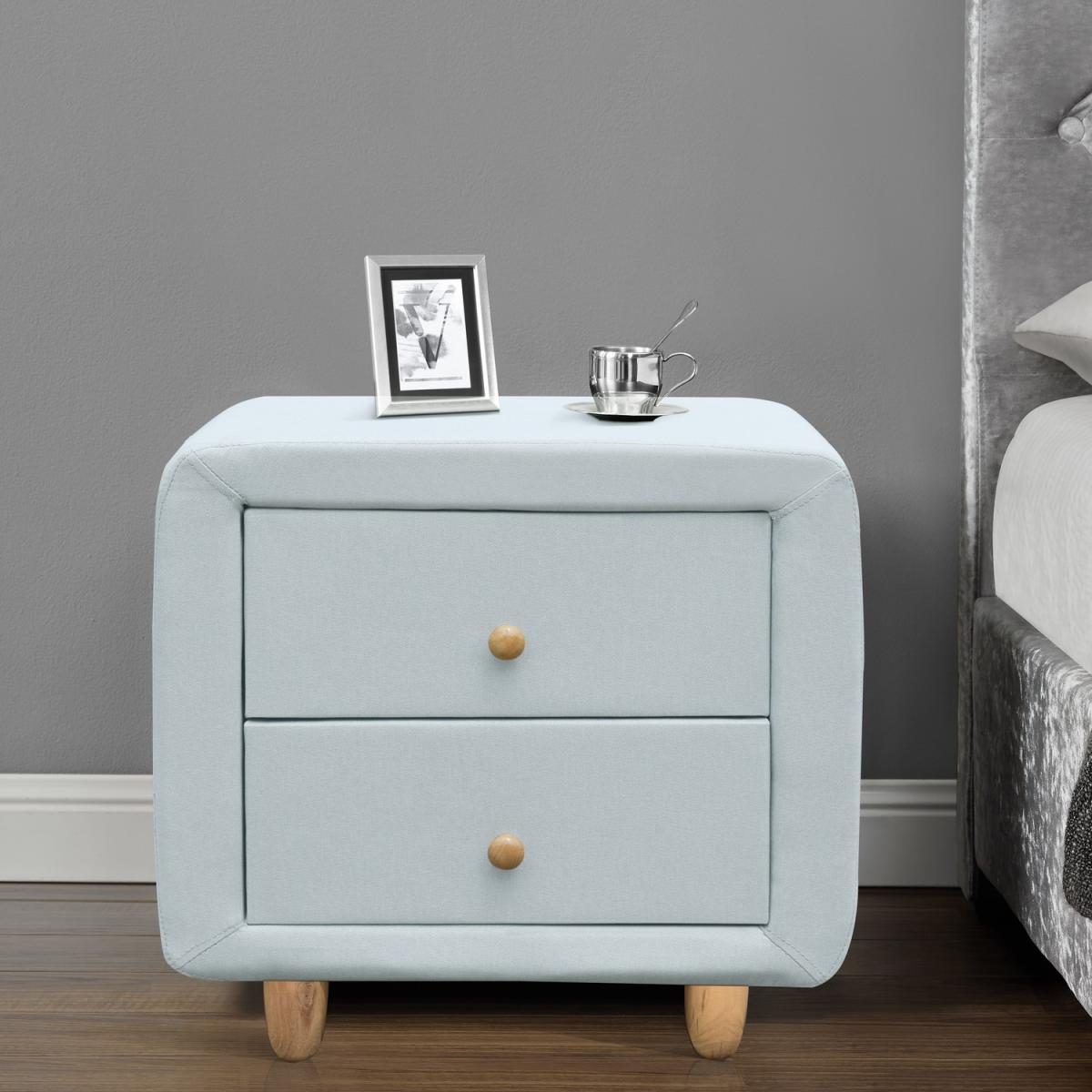This stylish modern and contemporary designed Fabric 2-Drawer Bedside Table is finished in linen fabric in the choice of Grey or Duck Egg Blue. It features an elegant neat drawers to store your bedtime essentials with stunning oak wood feet and handles, it can be used to place your table lamp, photos or ornament on its spacious surface top. This 2 Drawer cabinet unit is an essential piece of bedroom furniture and the perfect choice to add the finishing touches to your modern bedroom.