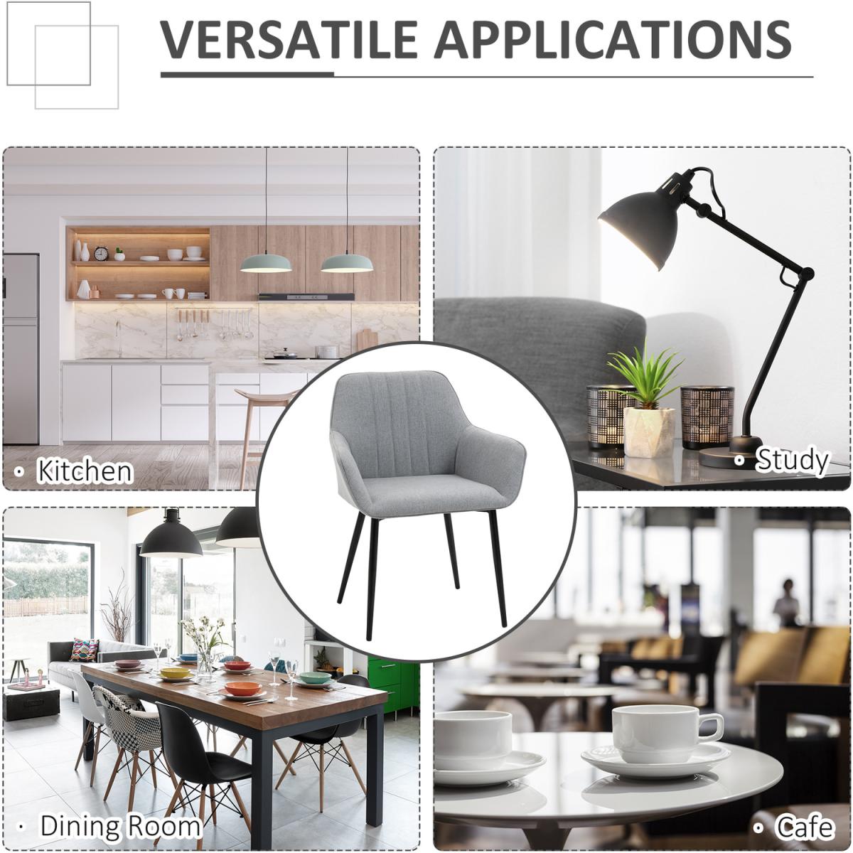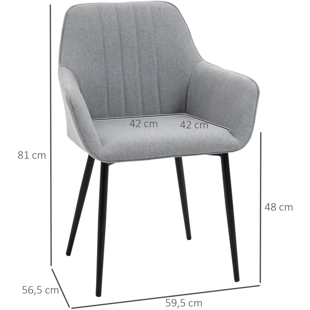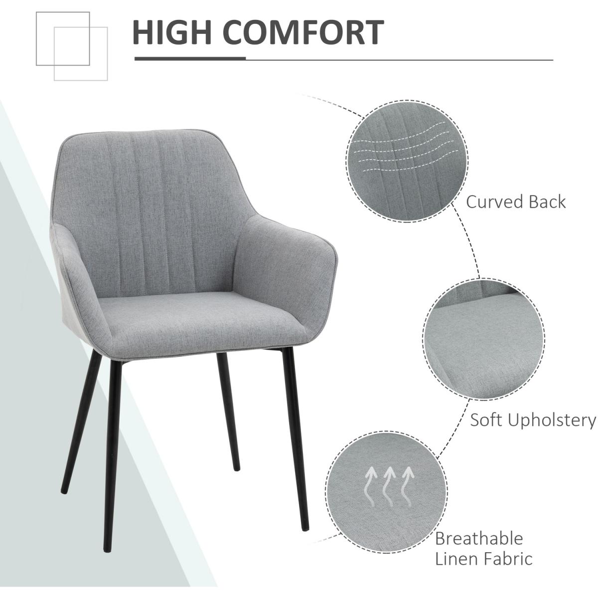 Linen Fabric Dining Chairs with Metal Legs, Set of 2 - Grey