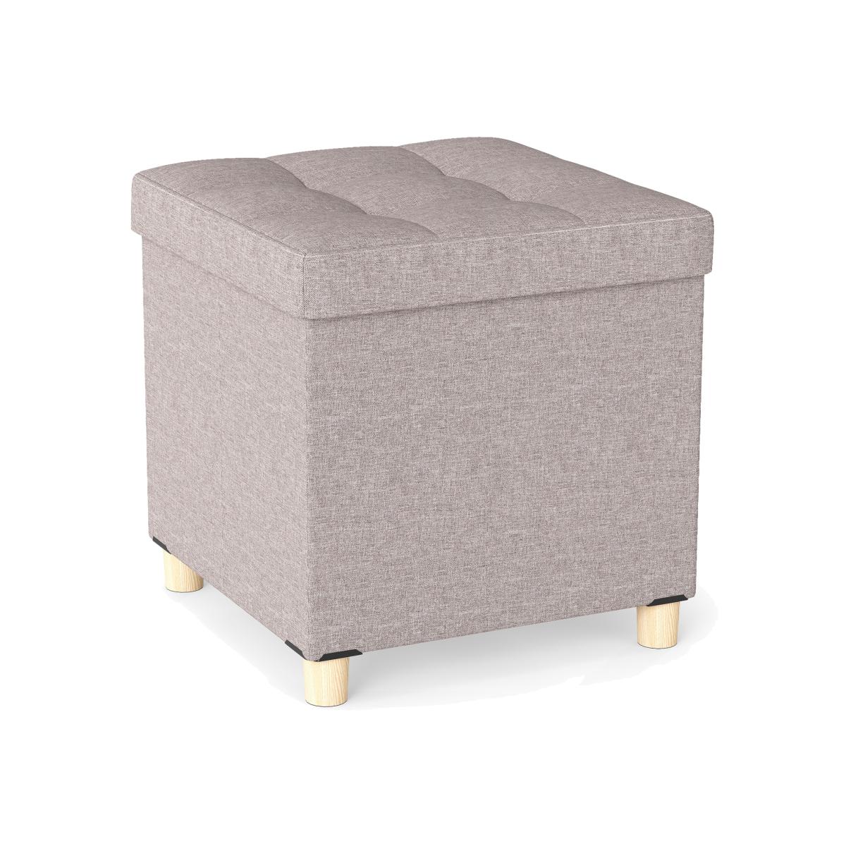 With generous hidden storage of 55. L, this storage ottoman provides a stylish way to keep your space uncluttered. Moreover, the flip-top lid is perfect for serving drinks or snacks. The comfortable padded surface features skin-friendly linen and supportive 2.5cm foam padding. Sturdy rubber wood legs can handle up to 150kg and have protective foot pads.