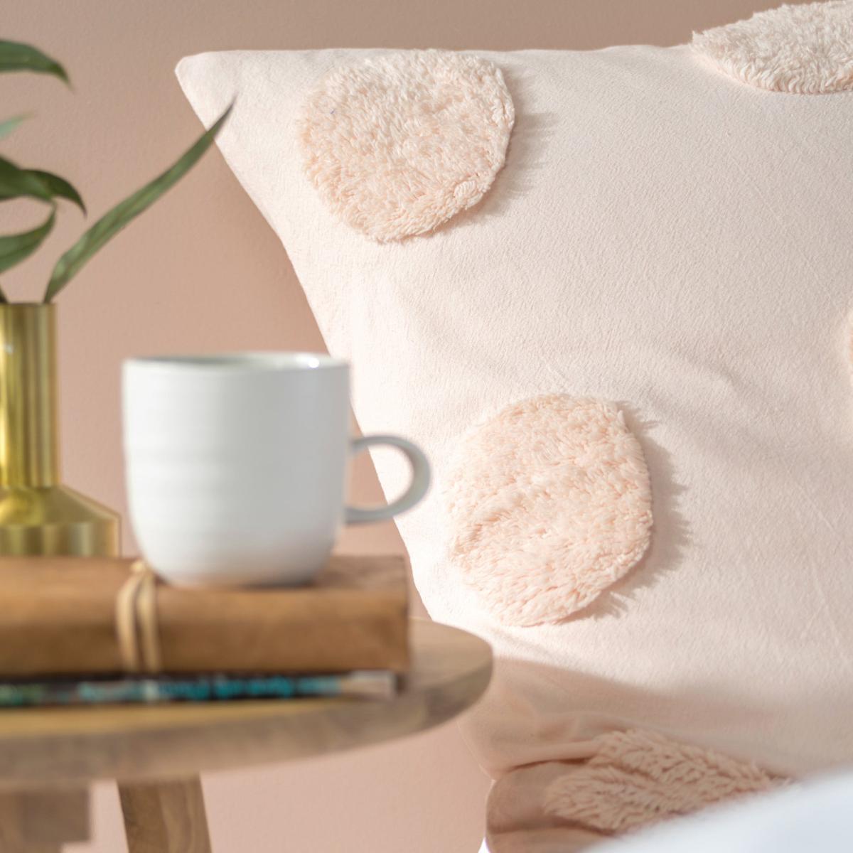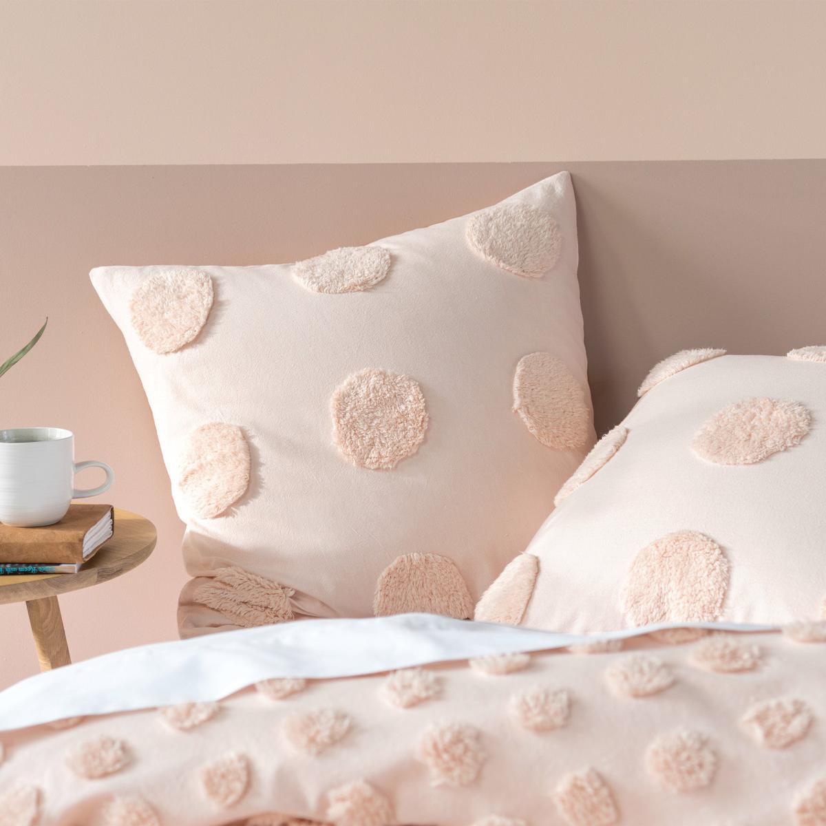 A pretty tufted polka dot design continental pillowcase. Add this to your bedroom decoration or match to the Haze peach duvet cover set. The closure on this pillowcase is an envelope closure. Made from 100% cotton, the pillowcase is soft to touch and durable to wear and tear. Care Instructions:.