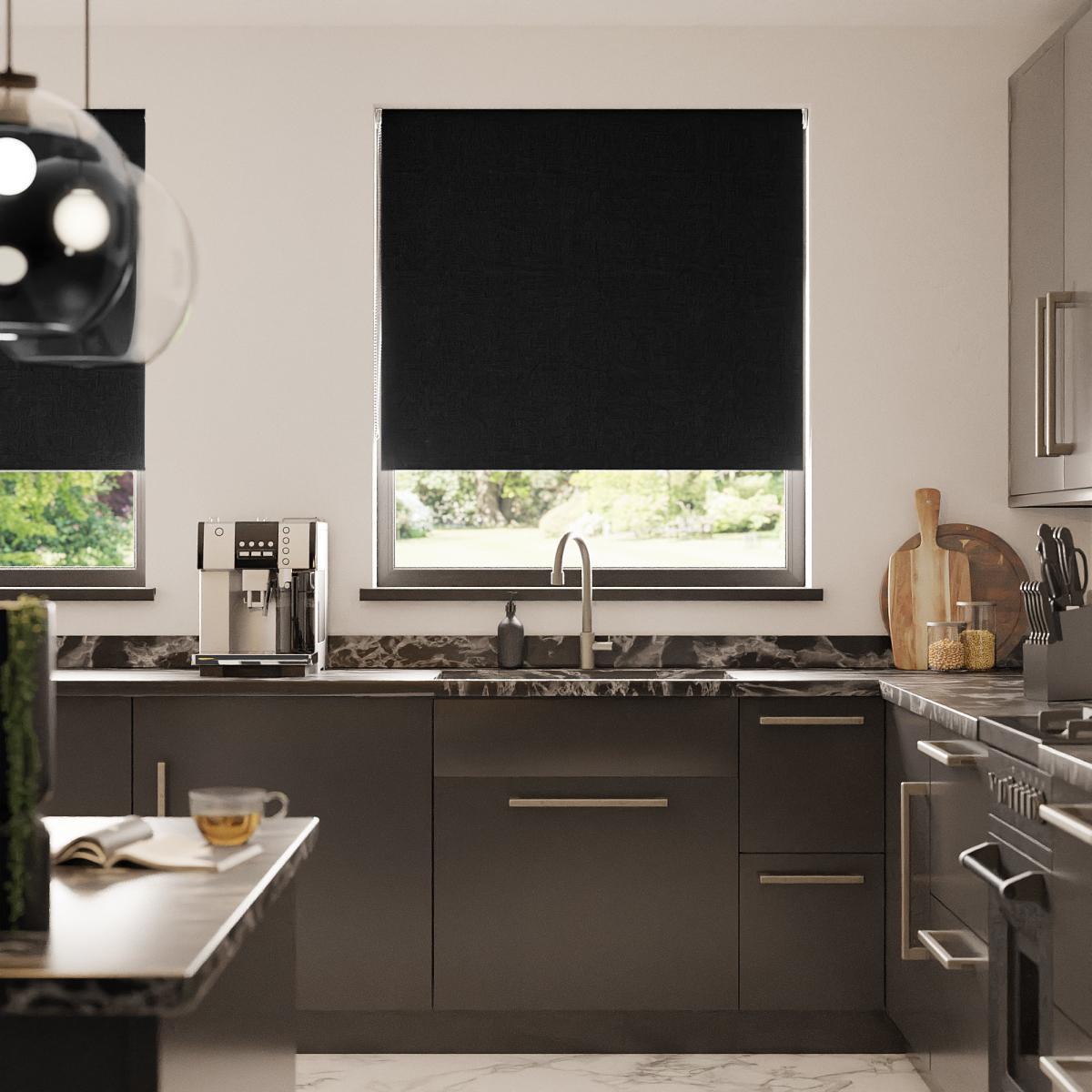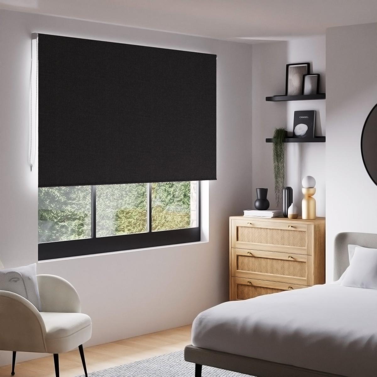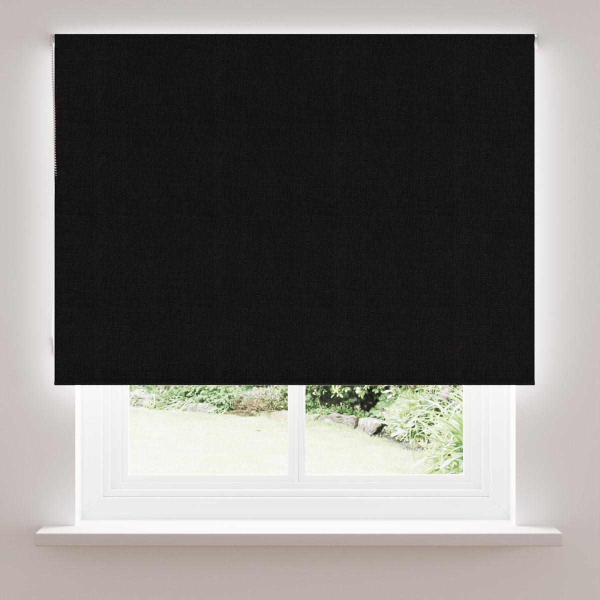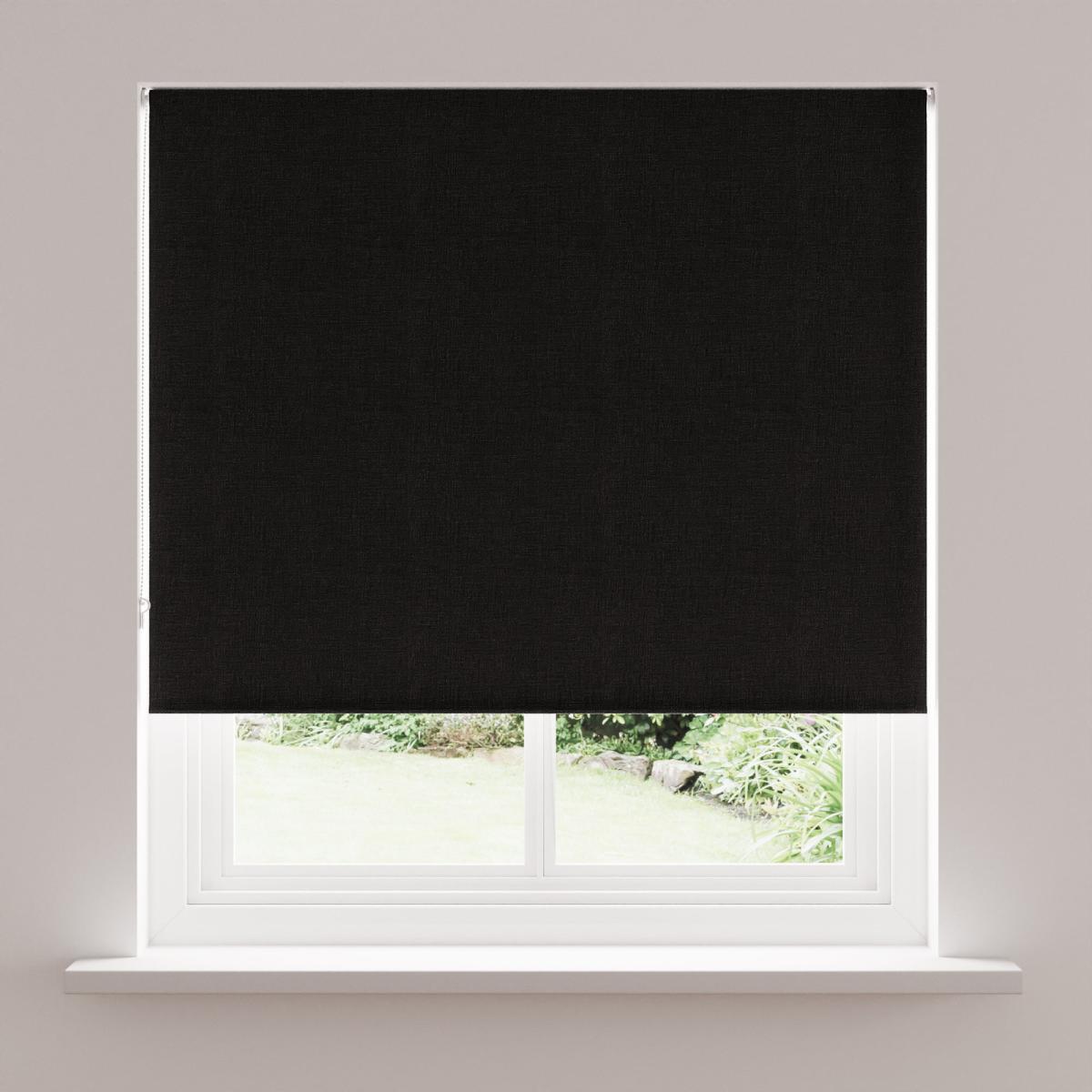 Linen Look Black Blackout Roller Blind Black